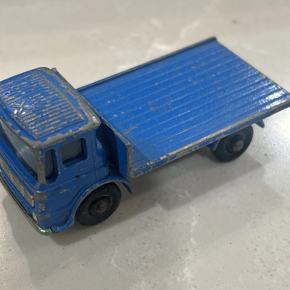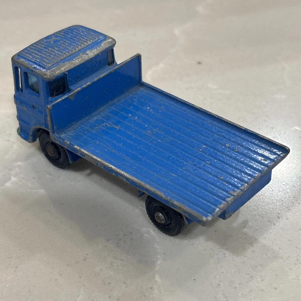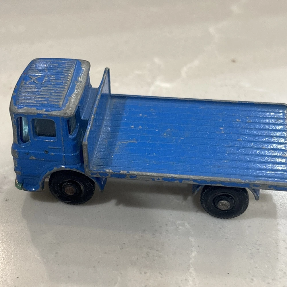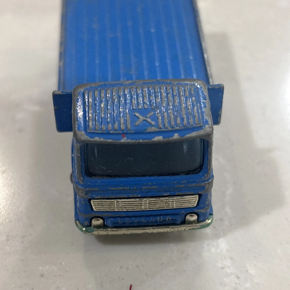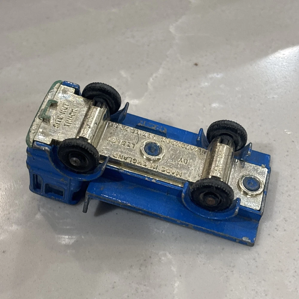The Matchbox Lesney Series No. 60 Site Hut Truck is a vintage diecast toy vehicle from 1970. Made in the United Kingdom, this blue Leyland truck is in the scale of 1:64 and part of the Transitional Superfast series. It features a construction theme with a site hut design, making it a unique and collectible piece for toy vehicle enthusiasts. Suitable for children aged 8 and up, this Site Hut Truck represents a piece of toy vehicle history from the early 1970s.