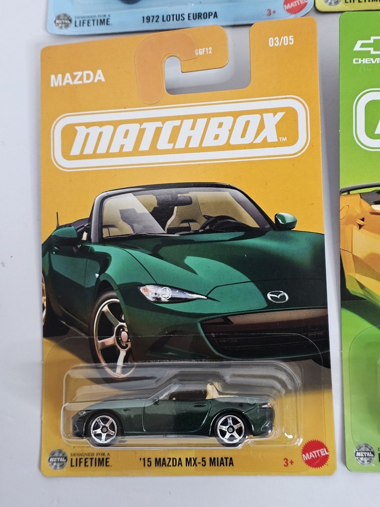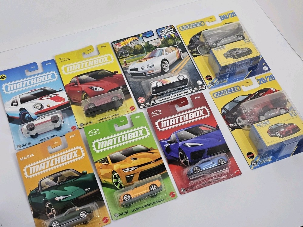 The product is a set of 5 Matchbox sport cars, including vehicles from famous brands such as Lotus, Jaguar, Mazda, Chevy, and Corvette. Each car is in 1:64 scale, made of diecast material, and features a colorful design. The set also includes 2 premium Toyota models and 1 premium Porsche. These cars are part of the 2025 series, designed with special edition features and targeted towards boys and girls aged 3 and above. Perfect for young car enthusiasts who enjoy collecting and playing with toy vehicles.
