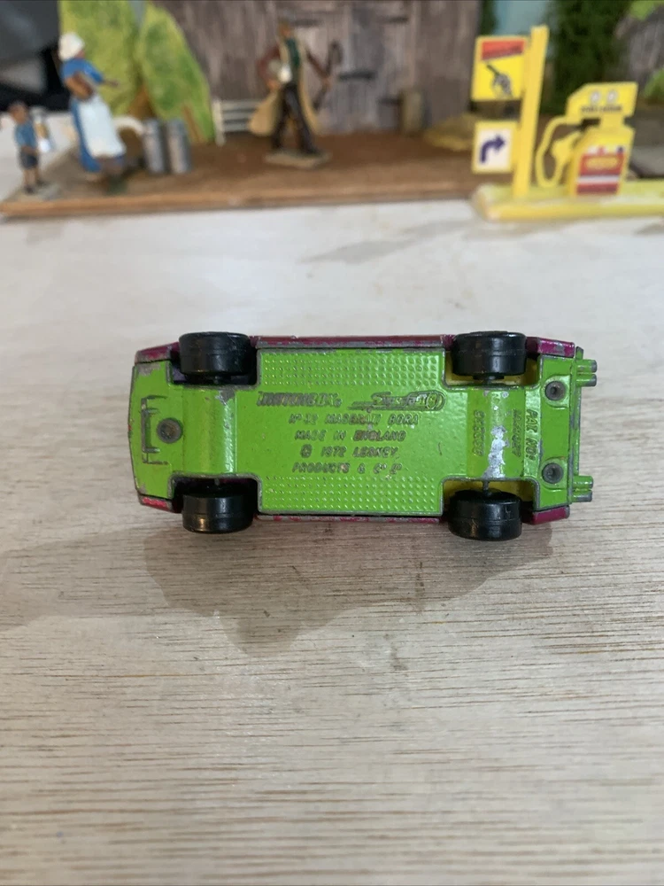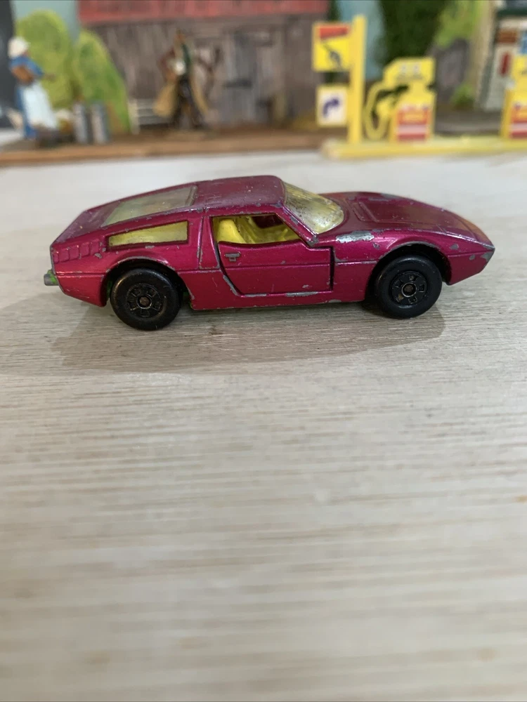 The Matchbox Superfast Lesney No. 32 Maserati Bora in purple is a toy car featuring opening doors. This vintage diecast vehicle is part of the Matchbox series and is a replica of the Maserati car model. With its iconic design and attention to detail, this toy car is a collector's item for fans of vintage vehicles. Used condition see photos