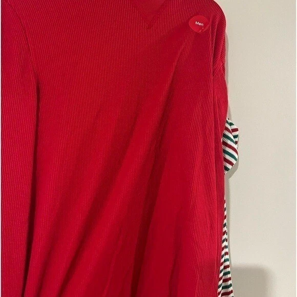 Product Details Holiday stripes bring festive fun to his pajama game in this supersoft thermal set from Family Pajamas. Texture: Thermal Waffle fabric Top: hits at hip; waffle-knit fabric; scoop neckline; pullover styling; long sleeves Bottom: hits at ankle; approx. inseam: 30-1/2"; waffle-knit fabric; elastic waist Search 'Family Pajamas Holiday Stripe' to see matching styles for the whole family Polyester/rayon Machine washable Imported