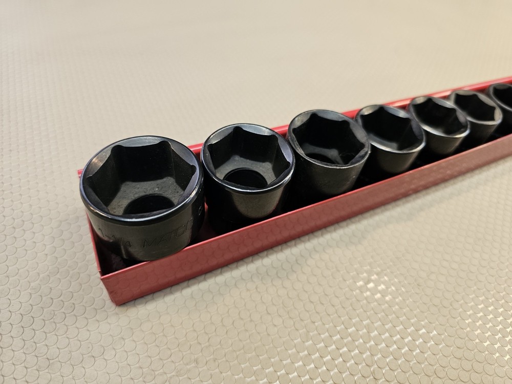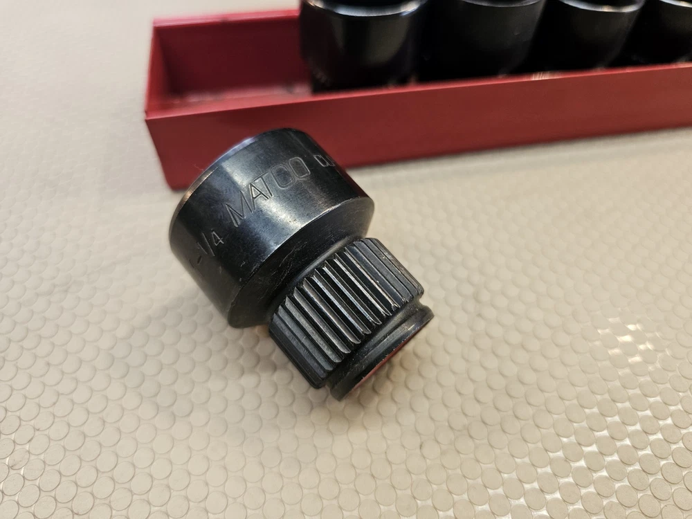 Matco Blp Series M6 Six Point Pass Through Socket Set 10 pc SAE 1/2 Size 1-1/4. Condition is Used. Shipped with USPS Ground Advantage.