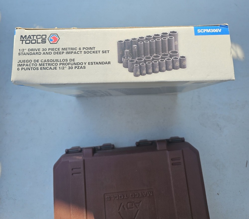 Matco SCPM306V 30-Piece 1/2" Drive Metric 6-Point ADV 10-24mm Impact Socket Set. Condition is Used. Shipped with USPS Ground Advantage.
