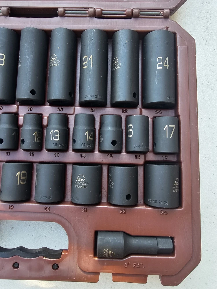 These Matco impact sockets are absolute beasts! Even used, they're in fantastic shape and handle tough jobs like a dream. Super durable and worth every penny.