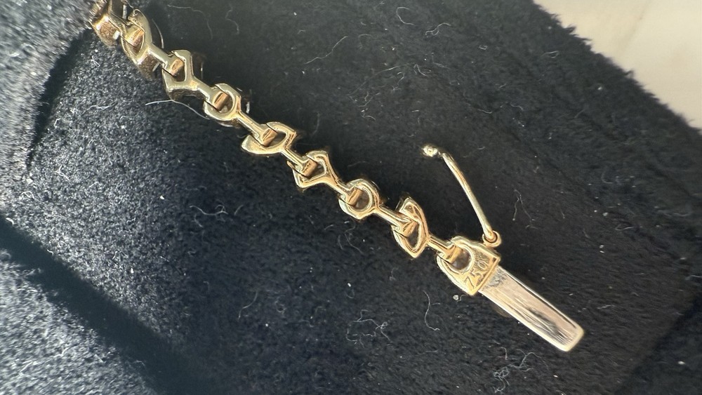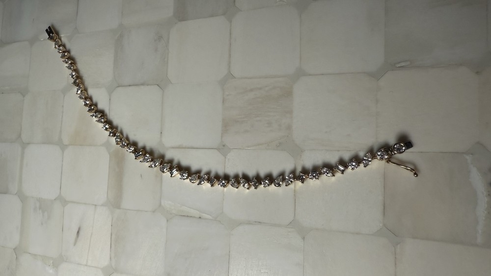 classic tennis bracelet, with 38 fancy shape diamonds suspended in 18K white, rose, or yellow gold. Infinitely versatile, this bracelet makes a striking & playful addition to your repertoire. PRODUCT DETAILS 18K white, rose, or yellow gold 4.00 carats of diamonds Approximately 0.08-0.10 carats per stone G/H color and VS-SI clarity