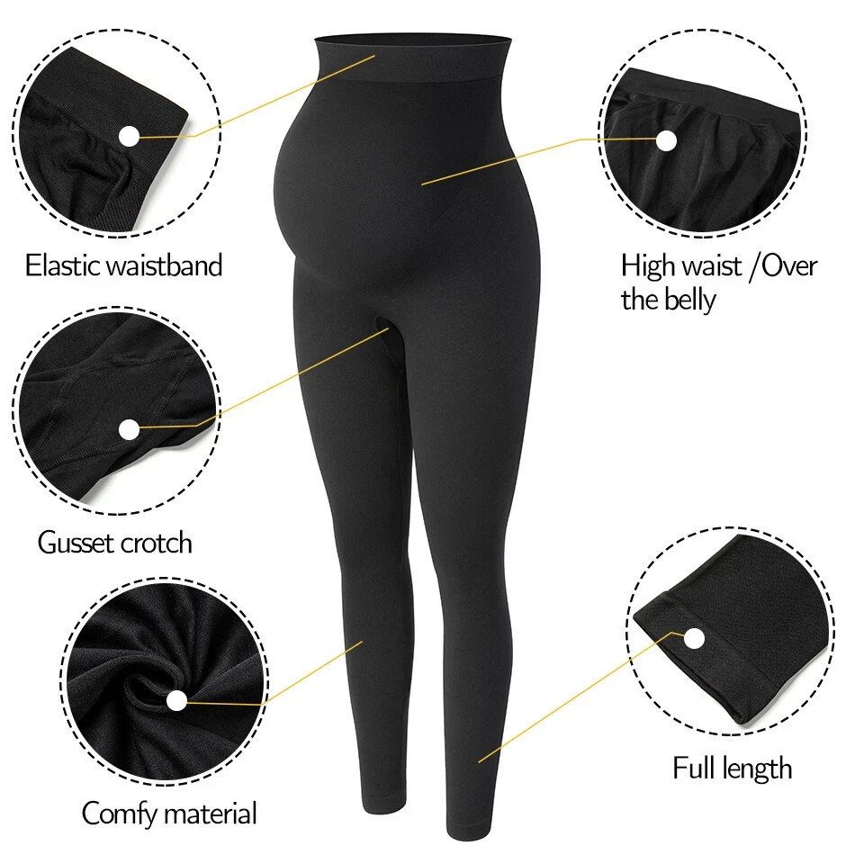 About this item Material: Legging fabric: 94% Rayon,6% Spandex; Waistband fabric: Nylon and Spandex Elastane. Features: Elastic waistband maternity leggings with full-panel coverage supports your belly without excess pressure on any specific point. Keep you cozy as your tummy expands, providing support and comfort. Super stretchy fabric offers plenty of room for belly growth. These maternity pants follow the changes of your body and stay with you throughout your pregnancy. The flexible, breathable, and lightweight fabric that doesn't constrict your movement makes them perfect for all-day wear. Occasions: Ideal for working out or wearing out and about. Our maternity leggings are great for layering under dresses or skirts, it will meet your needs for work and life during pregnancy.