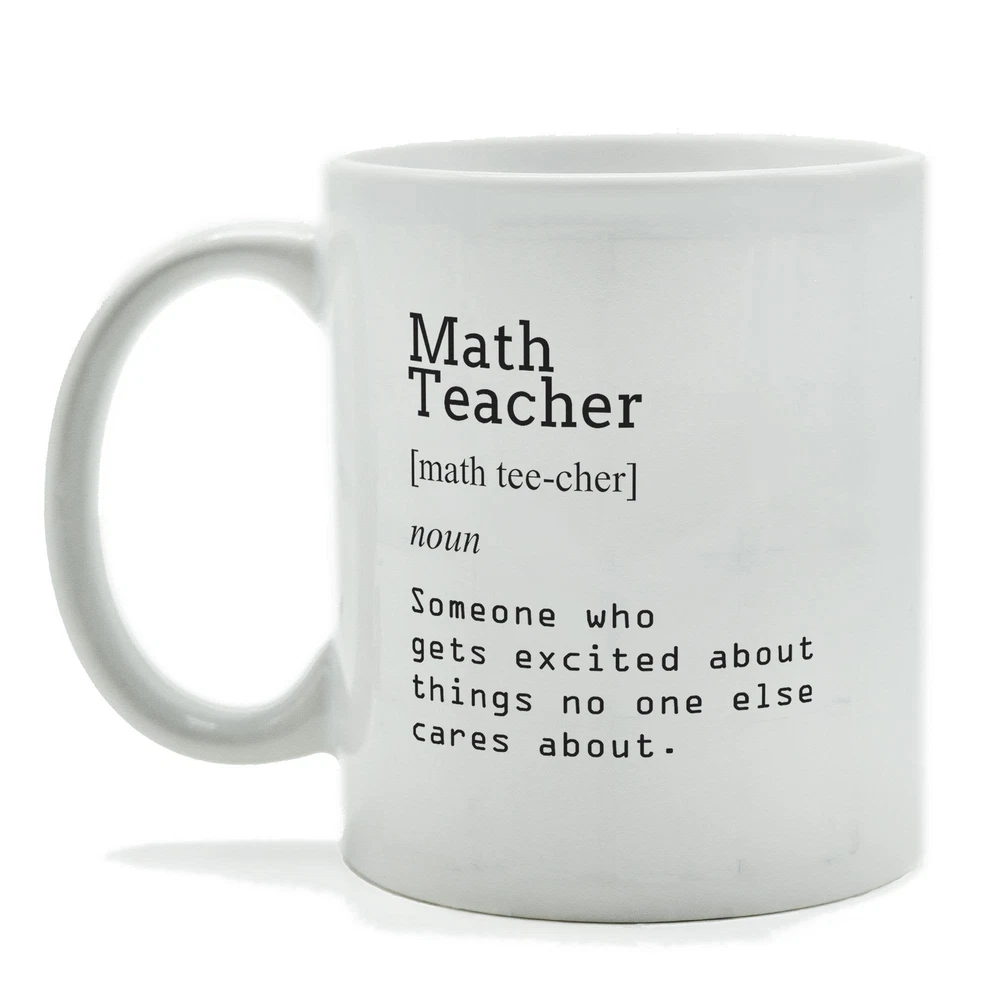 Math Teacher Definition Funny Mug ~ Great Gift For Math Teacher From Friends Co Product Details.. This high quality 11oz. ceramic white mug has a premium hard coat that provides crisp and vibrant color reproduction sure to last for years. Perfect for all hot & cold beverages. The highest quality printing possible is used. It will never fade no matter how many times you wash it. Material: 100% Ceramic. Print both sides. Dishwasher and Microwave Safe. High Gloss + Premium White Finish. Printed in the U.S.A. Personalized & Custom. We support personalized and custom mug to add custom, when placing an order, you can add notes to the "order note" in shipping address section. Also you can contact us directly via message. Shipping Info. Ready to ship in 1 to 2 business days, All products are made-to-order and proudly printed in the United States. Shipped by USPS and DHL, You will receive your order in 5-7 days. Replace & Refund. All products are defective during shipping broken, chipped will be replaced free of charge. You are not satisfied with the product, we will refund 100% money to you. If any other issues arise, please do not hesitate to message, we would be more than happy to assist you.
