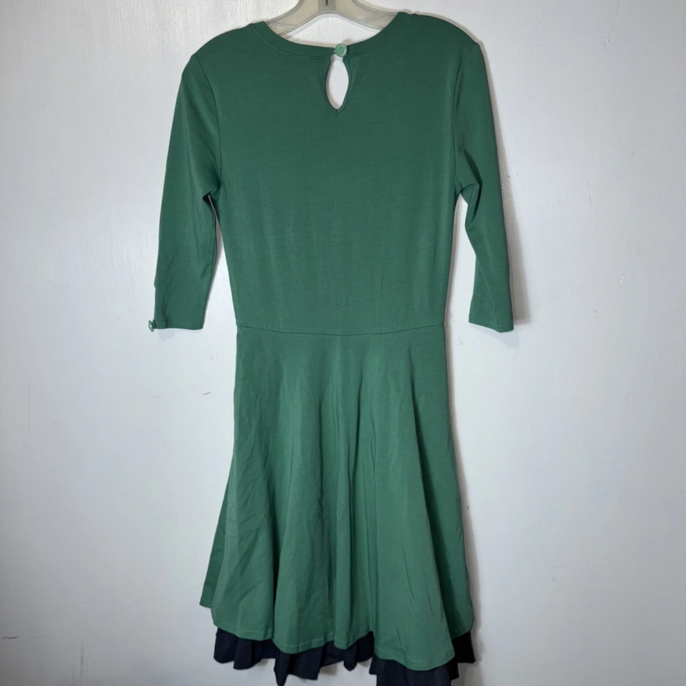 This Matilda Jane Joanna Gaines Pasture Dress is perfect for any occasion, whether it's a wedding, party, or just a casual day out. The dress features a solid green color and is made from a blend of spandex, cotton, and cotton blend materials, making it comfortable and stretchy. The dress has a scoop neckline, 3/4 sleeves, and a knee-length hemline. The dress also has some great accents, including ruffle details, button closures, and a layered design with the Matilda Jane logo. It's machine washable, making it easy to care for, and is available in an XS size. This dress is a great addition to any wardrobe and is perfect for any season.