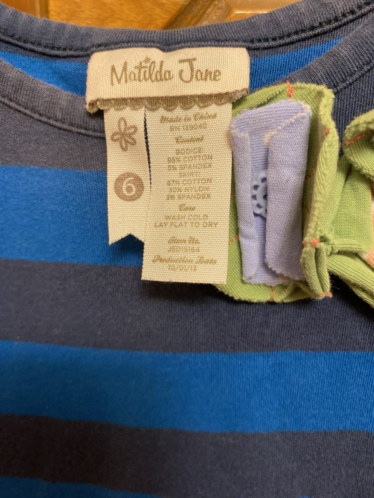 The product is a Matilda Jane girls dress in size 6. The dress features a multicolor design with a fit & flare style and knee-length hemline, making it perfect for young girls who love vibrant colors and playful patterns. Matilda Jane is known for its high-quality and stylish clothing for kids, ensuring that this dress will not only be fashionable but also comfortable for any little girl to wear.