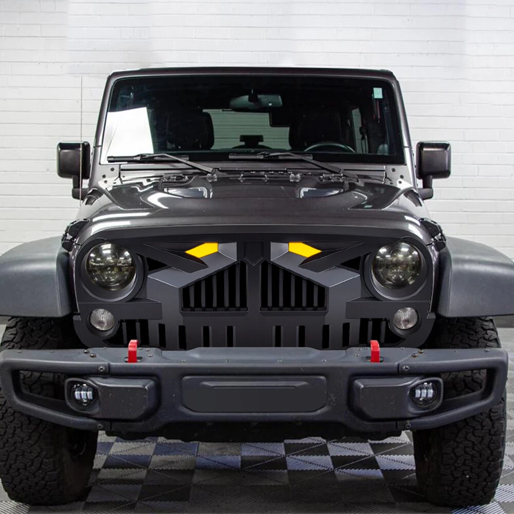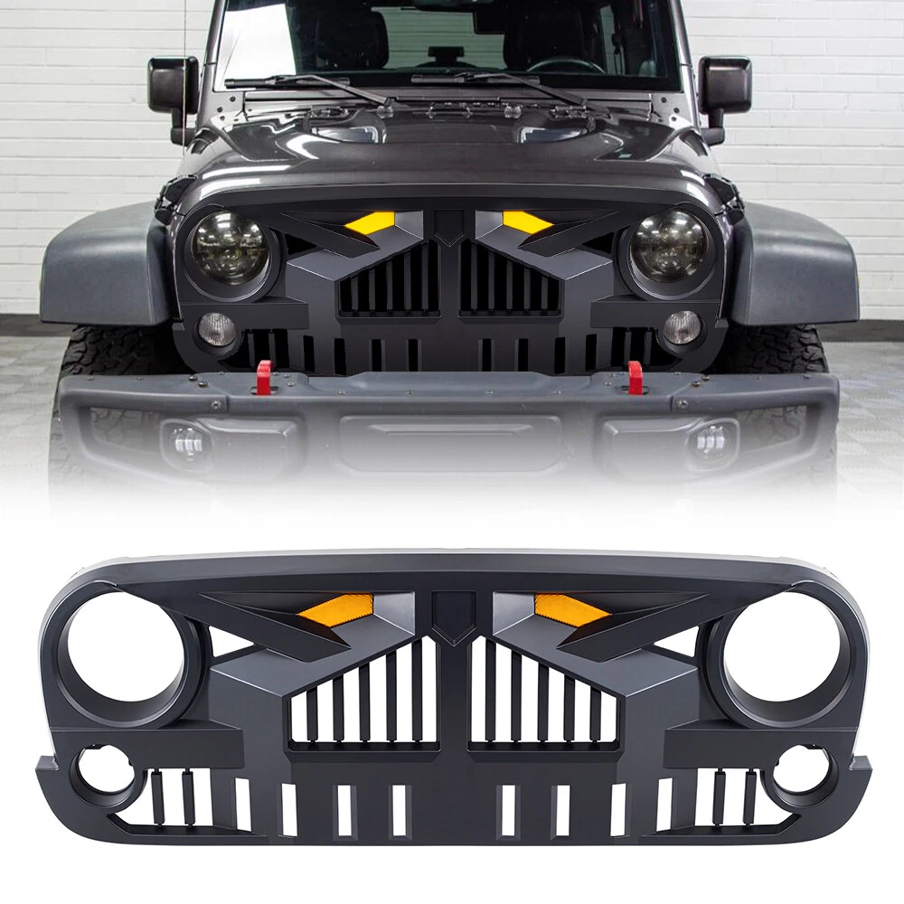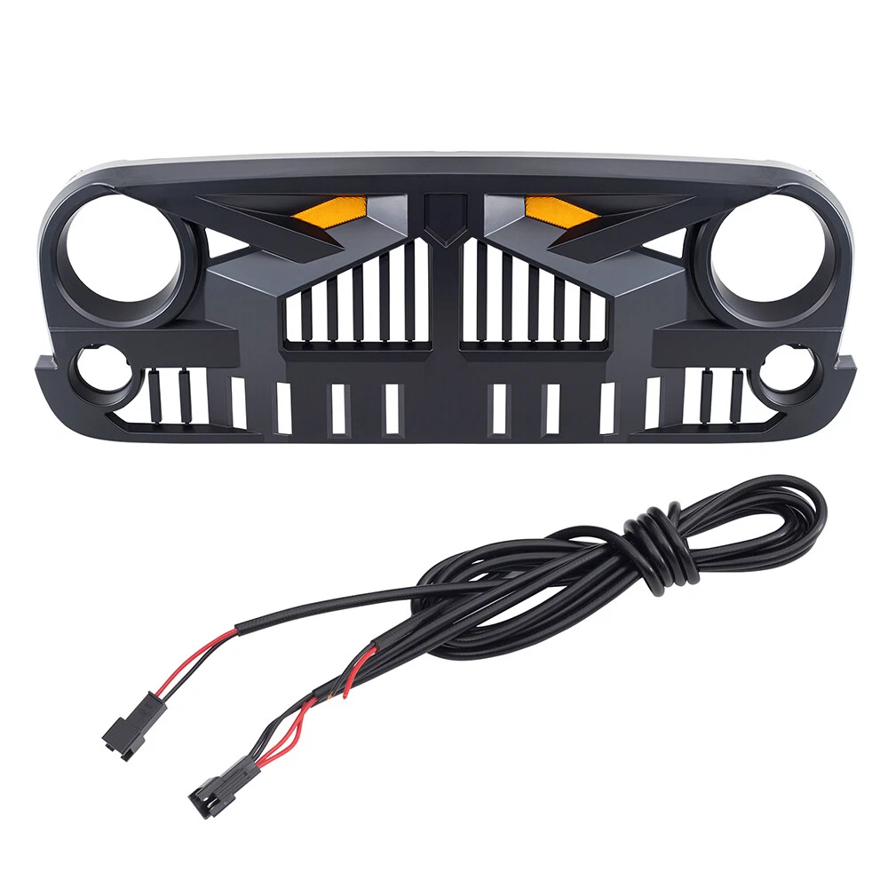 Fitment: Fit for 2007-2018 Jeep Wrangler JK JKU all models. Will not fit 2018 Jeep wrangler JL. Material: Manufactured from high quality ABS plastic material for superior strength and durability. Features: 2 LED amber lights improve driving safety. Empire style grille makes your Jeep stand out. Protects the condenser or radiator behind the grille from large rocks or rocks while driving. Wiring instructions: Connect the red wire to ACC or headlight, and the black wire to the negative pole. Package includes:m 1x Matte Black Empire Style Grille. 2x LED Amber Lights. 1 set wiring harness. Some hardware. Fitment: Fit for 2007-2018 Jeep Wrangler JK JKU all models. Will not fit 2018 Jeep wrangler JL. Material: Manufactured from high quality ABS plastic material for superior strength and durability. Features: 2 LED amber lights improve driving safety. Empire style grille makes your Jeep stand out. Protects the condenser or radiator behind the grille from large rocks or rocks while driving. Wiring instructions: Connect the red wire to ACC or headlight, and the black wire to the negative pole. Package includes: 1x Matte Black Empire Style Grille. 2x LED Amber Lights. 1 set wiring harness. Some hardware.