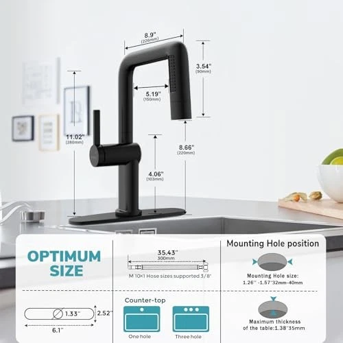 Customer Reviews: 4.6 out of 5 stars Date First Available: December 5, 2024 Style: Modern EAN: Does Not Apply Warranty Type: lifetime Number of Handles: 1 MPN: Does Not Apply gtin13: Does Not Apply Included Components: Gravity Ball, Deck Plate, Hose, Instruction Manual Item Width: 1 Manufacturer: dongguanshizhilianyungukejiyouxiangongsi Material: Zinc Product Dimensions: 8.9"D x 2.9"W x 11.02"H Finish: Matte Black Recommended Uses For Product: Bar, Kitchen, Bathroom, Outdoor Maximum Flow Rate: 1.8 Gallons Per Minute Spout Reach: 5.19 Inches Batteries Included: No Handle Material: Zinc Hole Count: 1 Handle Type: Lever Mounting Type: Protruding Item Weight: 4.85 pounds Special Feature: Easy to Install, Pull Down Sprayer, 360 Swivel, Lead Free UPC: Does Not Apply Color: Matte Black Brand: Does Not Apply Item Package Quantity: 1 Speaker Cutout Diameter or Length: 1.57 Inches Model Name: BHUR0082ABLUSY-BLACK Handle Location: Center Item Length: 1 Batteries Required: No Spout Height: 8.86 Inches Special Features: Easy to Install, Pull Down Sprayer, 360 Swivel, Lead Free Item Height: 1 Type: Does Not Apply Is Electric: No Item model number: BHUR0082ABLUSY-BLACK Finish Type: Matte Black