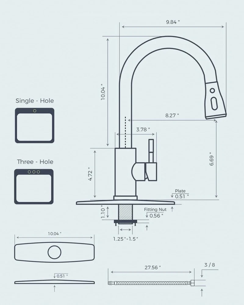 Matte Black Stainless Steel Faucet with Pull Down Sprayer ‹ › ‹ › ‹ › ‹ › ‹ › ‹ › ‹ › ‹ › ‹ › Matte Black Stainless Steel Faucet with Pull Down Sprayer Superior Performance: Certified to cUPC, NSF 61/372, and Lead-Free standards for your peace of mind. Constructed with SUS 304 stainless steel, ensuring durability and longevity. Features drip-free ceramic cartridges and high-temp PEX hoses for enhanced safety. Product Specifications: Overall Height: 14.76 inches Spout Height: 6.69 inches Maximum Deck Thickness: 1.5 inches Pre-drilled Hole Size Requirement: 1.30"-1.38" Flow Rate: 1.8 Gallons Per Minute, saving 20% water. Versatile Functionality: Three spray settings: Stream, Spray, Pause for all your kitchen needs. High arc with an 18 inch retractable hose ensures efficient sink coverage. 360° rotation spray head and a single handle for effortless control. Minutes to Install: Installation in under 15 minutes with no professional help required. Includes a 10-inch detachable deck plate for one, two, or three-hole sinks. All mounting hardware included for a hassle-free setup. Efficient and Simple Cleaning: Five-layer nanotechnology finish that resists fingerprints and spots. Easy to clean with a damp cloth, maintaining a tidy look effortlessly. Where Style Meets Reliability: This sleek faucet embodies precision craftsmanship and minimalist design, seamlessly complementing most kitchen sinks. Its modern elegance ensures effortless functionality, making it a long-lasting addition to your culinary space. Transform your kitchen experience with this faucet that harmoniously blends style and practicality. Upgrade your home today! Shipping Free & Fast Shipping - We offer free shipping to most of the USA with a normal delivery time of 3-10 business days. However, due to various situations, additional delivery time (up to 3 weeks) may be required for some items. Alternative Carriers - We may use alternative carriers (e.g. USPS, FedEx, UPS, etc.) to ensure your package arrives safely and on time. Due to the use of multiple carriers, we are unable to provide a tracking number automatically. Handling Time - Orders are processed and shipped within 1-5 business days of receiving cleared payment. Shipping Restrictions - Shipping to Alaska, Hawaii, Puerto Rico, Guam, and other US territories may incur shipping charges or delivery restrictions. Please contact us before ordering, or your order can be refunded/cancelled. State Restrictions - There may be restrictions based on your state of purchase. For example, certain items may not be shipped to California due to state regulations. Contact for Tracking Updates - If you require tracking updates or have any concerns about the delivery of your order, please feel free to contact us, and we will be happy to assist you. Return 30-Day Hassle-Free Returns - We want you to be completely satisfied with your purchase. If you are not, you can return the item within 30 days of receiving it for a full refund or exchange. Easy Return Process - To start a return, simply contact us and we will provide you with a prepaid return shipping label and detailed instructions. Restocking Fee - There are no restocking fees for returns. However, the buyer is responsible for return shipping costs if the return is not due to a seller's error. Refund Processing Time - Refunds will be processed within 5 business days of receiving the returned item in its condition. Payment We accept all major credit cards, PayPal, and Apple Pay for your convenience. Your payment information is secure and encrypted to ensure a safe and seamless transaction. Please complete your payment within 3 days of purchase to avoid any delays in shipping. Feedback Your feedback is extremely important to us. We strive to provide the best products and customer service possible. If you are satisfied with your purchase, please take a moment to leave us a positive review. If you have any concerns or issues with your order, please contact us before leaving negative feedback. We are committed to resolving any problems and ensuring your satisfaction. Contact Us If you have any questions or concerns, please feel free to out to our customer support team. You can contact us through the eBay messaging system. We are available Monday to Friday, 9:00 am to 5:00 pm EST, and we will do our best to respond to your inquiry within 24 hours. Buy it now and enjoy a pleasant shopping experience! Item Weight: 3.69 pounds Unit Quantity: 1 Material: Stainless Steel,SUS 304 stainless steel,ceramic,PEX hoses Suitable For: Kitchen Sink,Farmhouse,Camper,Laundry,RV,Bar,Outdoor,Sink Features: Pull-Out,360° rotation,high arc,18 inch retractable hose,single handle Room: Kitchen Items Included: Instruction Manual,Deck Plate,Handle,Sprayer Type: Kitchen Faucet Finish: Black Number of Faucet Holes: 1 Color: Matte Black Number of Faucet Handles: 1 Faucet Mounting Type: Deck Mounted Shape: High Arc Handle Type: Lever Installation: Single Hole Faucet Hole Spacing: 1.30-1.38 inches Spout Height: 6.69 Inches Style: Classic