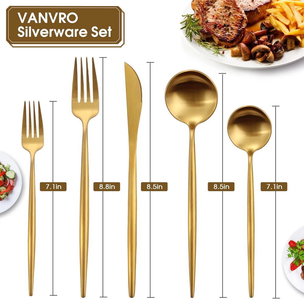 Timeless Circular Design : Matte gold silverware set's round head design is simple but not simple, and elegant design is never out of date. Ergonomic design makes tableware easy to use. Superior Durability : This set of tableware uses enough high-quality stainless steel raw materials and vacuum environment-friendly titanium plating technology, which makes it not easy to fade, bend and durable. It can accompany you for a long time. Update Your Silverware : Investing in tableware is a very meaningful thing. If you are willing, then a good set of tableware will make you feel happy and increase your appetite when eating. Use And Care:This stainless steel silverware set is dishwasher safe. Careful maintenance can make silverware look like new every time it is used. If you wash by hand, please don't clean it with hard objects and dry it with a soft cloth after each cleaning. Customer first : If you have any questions before or after use, you can contact us directly, and we will reply and deal with them as soon as you see the message. high-quality and timely after-sales service will escort your shopping.