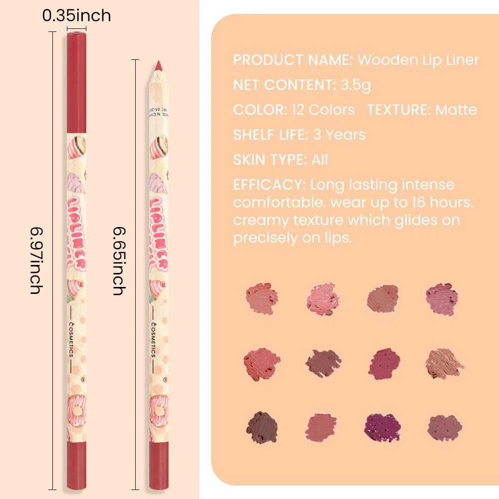 Matte Lip Liner Pencils Pack Set,12Pcs Natural Nude Brown Lipliner Bundle, Highly-Pigmented Pencil for Shaping & Sculpting Lips, Creamy Matte Labiales, Cool Tone Neutral Pink Lip Makeup Matte Lip Liner Pencil: Our long-wearing lip liner pencil glides on smoothly and defines your lips with a single stroke for a perfect look. The waterproof formula won't fade, smudge or dry out your lips Rich and Vibrant Colors: This lip liner set includes 8 highly pigmented colors, including classic nude, deep red, vivid pink, and more. The rich and vibrant colors create a full, plump and sexy lip look Perfect for All Occasions: This lip liner is suitable for various occasions, such as daily makeup, party, wedding, dating and other occasions, to create different lip makeup looks Easy to Use: The lip liner is creamy and easy to apply, and the thin tip makes it easy to draw delicate and precise lines to enhance the lip shape 100% Cruelty-Free: Our lip liner is cruelty-free, no paraben and non-toxic, safe and healthy for daily use Product Description Dimensions 4.37 inches x 8.46 inches x 0.43 inches. Weight: 1.45 oz Specifications Color 12 Pack-set15 Item Form Pencil Country of Origin China Skin Type All Finish Type Matte Package Dimensions 8.46 x 4.37 x 0.43 inches; 1.45 ounces Shipping: Shipped from the USA. Fast delivery within 2–3 days. Payment: PayPal, credit card, bank transfer. Returns: 30-day free return – we cover the shipping cost. Quality: Made in Europe/USA/China. No customs fees. VAT invoice on request. Feedback: You’ll automatically receive positive feedback after payment.