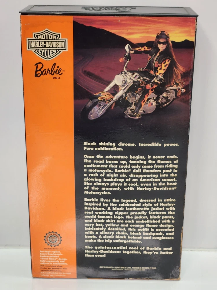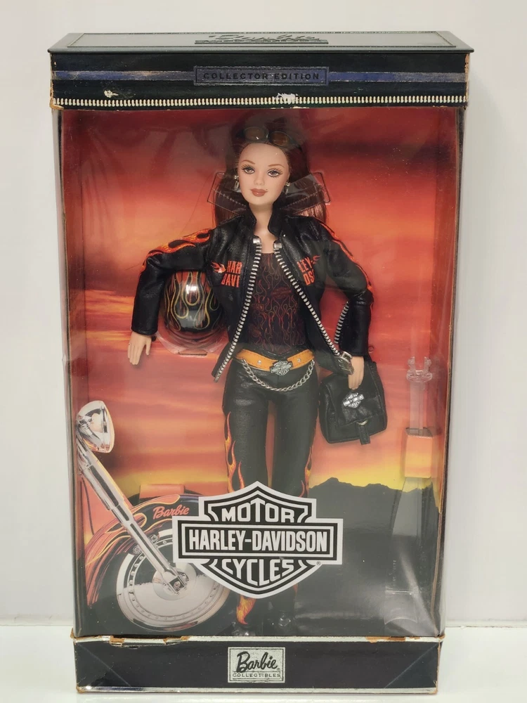 This NRFB vintage 2000 Barbie doll is a must-have for collectors. The doll, made by Mattel, is part of the Harley-Davidson Barbie product line and features articulation, making it perfect for display or play. The doll's straight red hair is styled in a sleek ponytail, and she has a light complexion and brown eyes. This Barbie doll is an original, collector edition, and has never been removed from its original packaging, making it a timeless treasure for any collection. The doll is 11 inches in size and comes with one piece, the doll itself. This Barbie doll is perfect for all occasions and is suitable for adult collectors. 241124-18