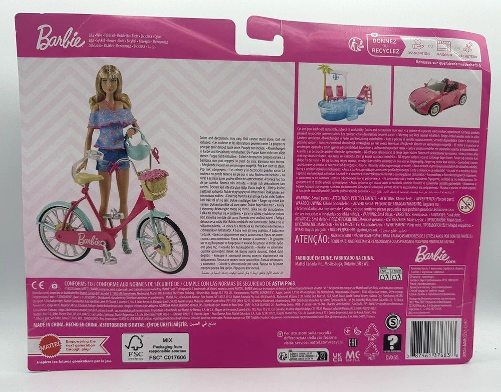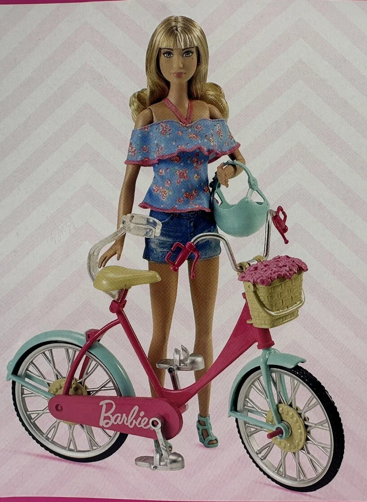 This Barbie doll is the perfect addition to any doll collection! The doll is dressed in a pink and mint green outfit and comes with a matching floral basket helmet and a bike. The doll is 11 inches in length and is suitable for children aged 3 and above. The doll is an original Mattel product and is not compatible with any other dolls. The doll is made of plastic and is not handmade. It is a great gift for any Barbie fan!