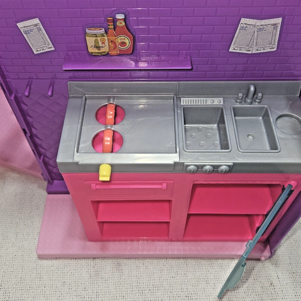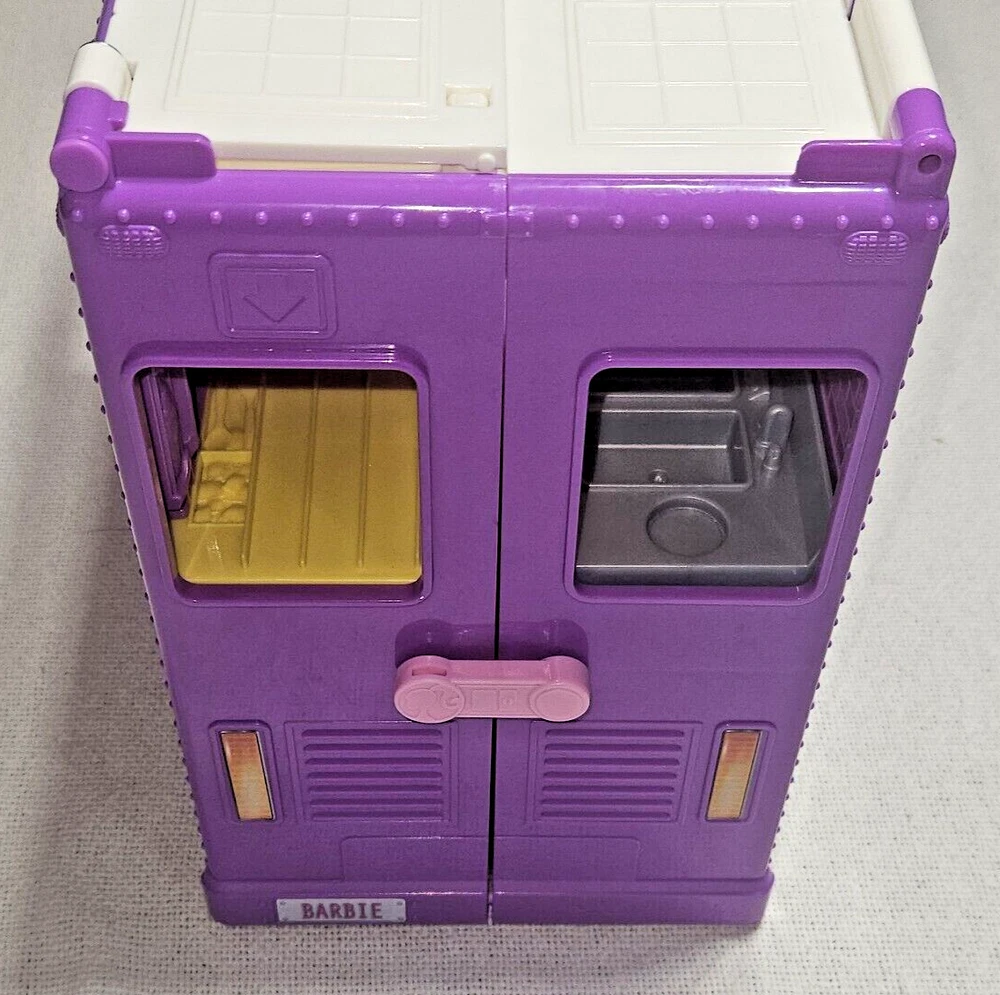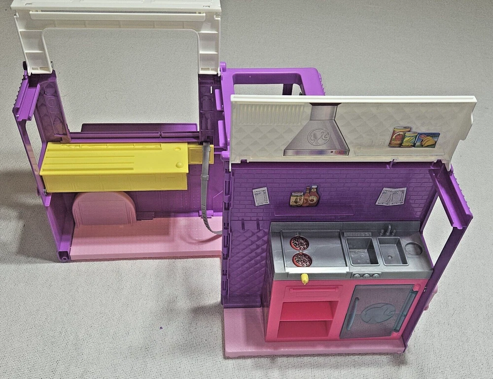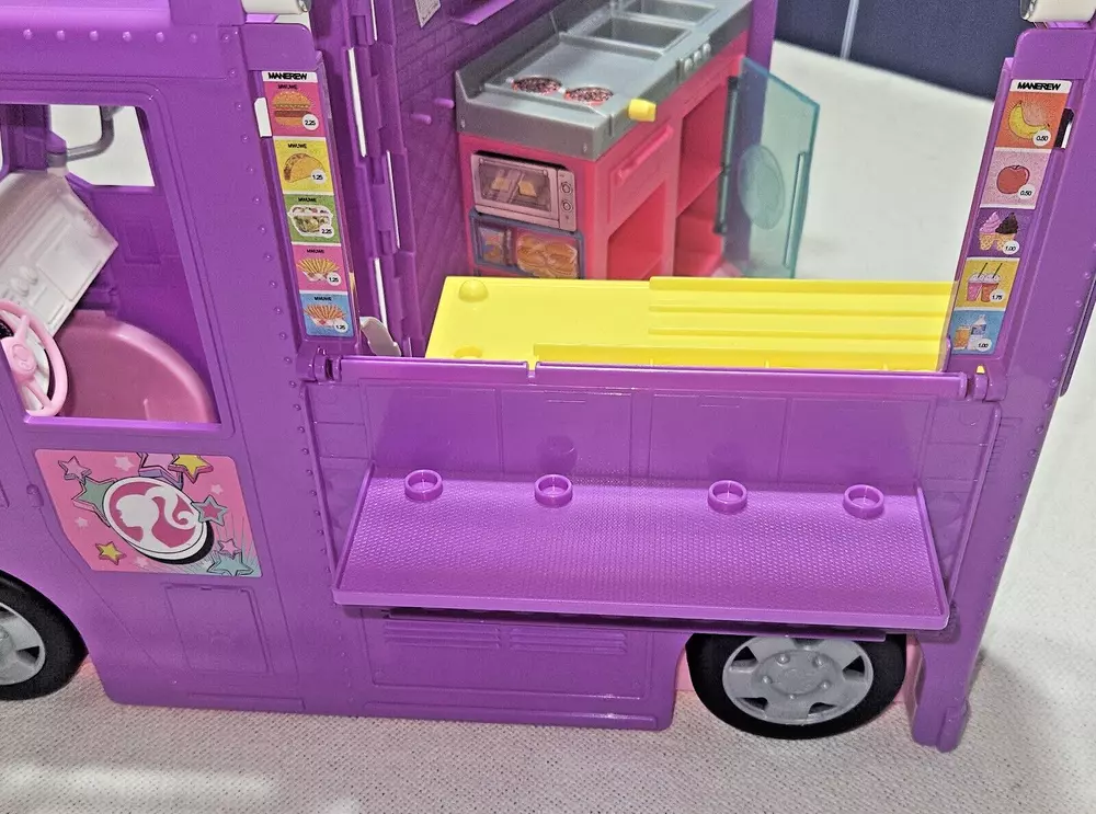 Introducing the Mattel Barbie Fresh 'N' Fun Purple Food Truck, a vehicle that expands and transforms to bring excitement to any Barbie doll collection. This food truck is perfect for imaginative play and is designed for Barbie dolls aged 5-7 years. With a length of 17 inches, a height of 10 inches, and a width of 6.5 inches, this purple food truck is made of durable plastic and is an original Mattel product. It is compatible with 11& 12 inch Barbie dolls and is perfect for youth who love the Barbie franchise. This food truck is a great addition to any Barbie doll collection and is sure to bring hours of imaginative play.