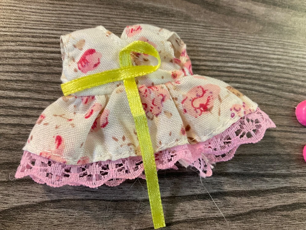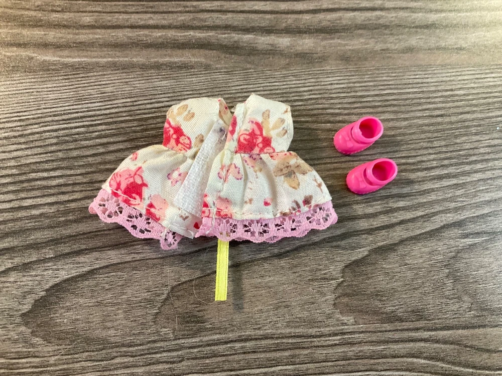 Kelly Doll Outfit This Kelly Clothes Set features A sleeveless dress with pink flowers with yellow bow at waist and pink lace at bottom A pair of shoes are included Set is in Nice Condition ***Please don’t hesitate to make an offer! *** ***Buy It Now :$ 4.50*** OR Best Offer ***Shipping: $ 4.75*** ***Happy to combine shipping for you*** *** Please let me know if you have any question, Happy to help in any way I Can*** ****Please , if you have the time check out my newly opened eBay store. I will be listing many Barbies, clothing, & accessories. As rims goes on I hope to add more fun collectible and vintage items. Like my store to see my newly listed items. Thanks so much!