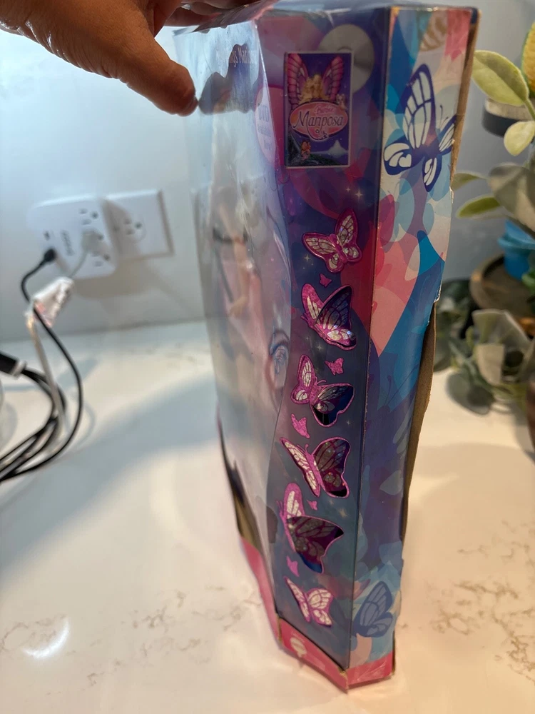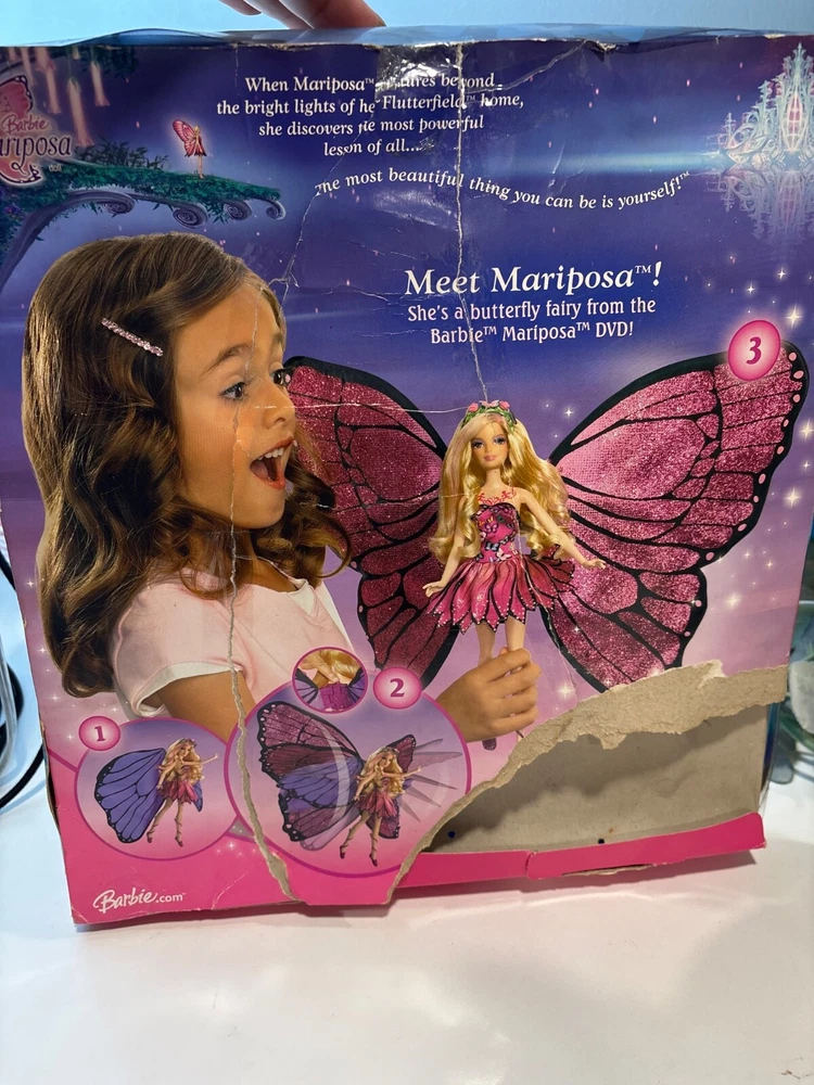Note: although this Barbie is new and has never been out of the box, it was stored for many many years therefore, the Box has some damage and the plastic on top has lifted in a couple of places.Unveil the magic of imagination with the Mattel Barbie Mariposa Magic Wings Doll. Encased in its original, unopened packaging, this fashion doll is a limited edition collector's toy that promises to enchant fans of all ages. With its vibrant purple theme, this Barbie is an ideal gift for those who appreciate the fantasy in storytelling. The doll features intricate details such as wavy, curly blonde hair, brown eyes, and a light complexion, capturing the essence of the beloved character. Made from quality materials including cloth, plastic, and vinyl, the Barbie is not only articulated for dynamic posing but also interactive, offering an immersive play experience. Whether for display or play, this doll is a wonderful addition to any collection.