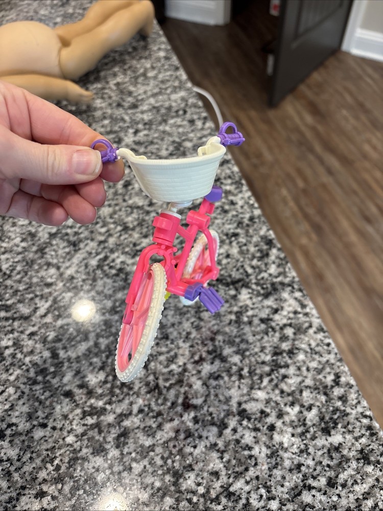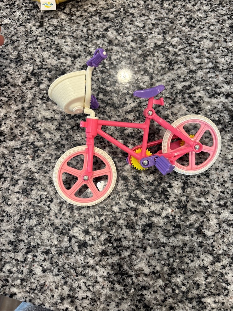 The Mattel Bicycle Barbie Doll from 1995 is a vintage collectible featuring a pink and purple bicycle with a pink helmet. This 7.5" x 5" x 4" resin and plastic toy is part of the Barbie franchise, designed for ages 8-11 years. The original, licensed reproduction from Mattel is a nostalgic piece from the 1990s, making it a unique addition to any doll collection or vintage toy collection.