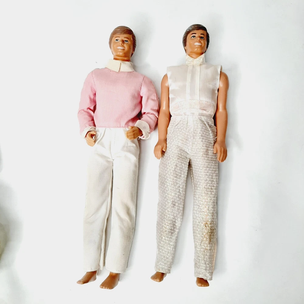 Mattel Crystal Ken & Day to Night Ken 2 Male Fashion Dolls Barbie's Boyfriends Good condition with minor wear due to use and age; Day to Night Ken has some paint missing on hair; clothes have some staining and minor damage