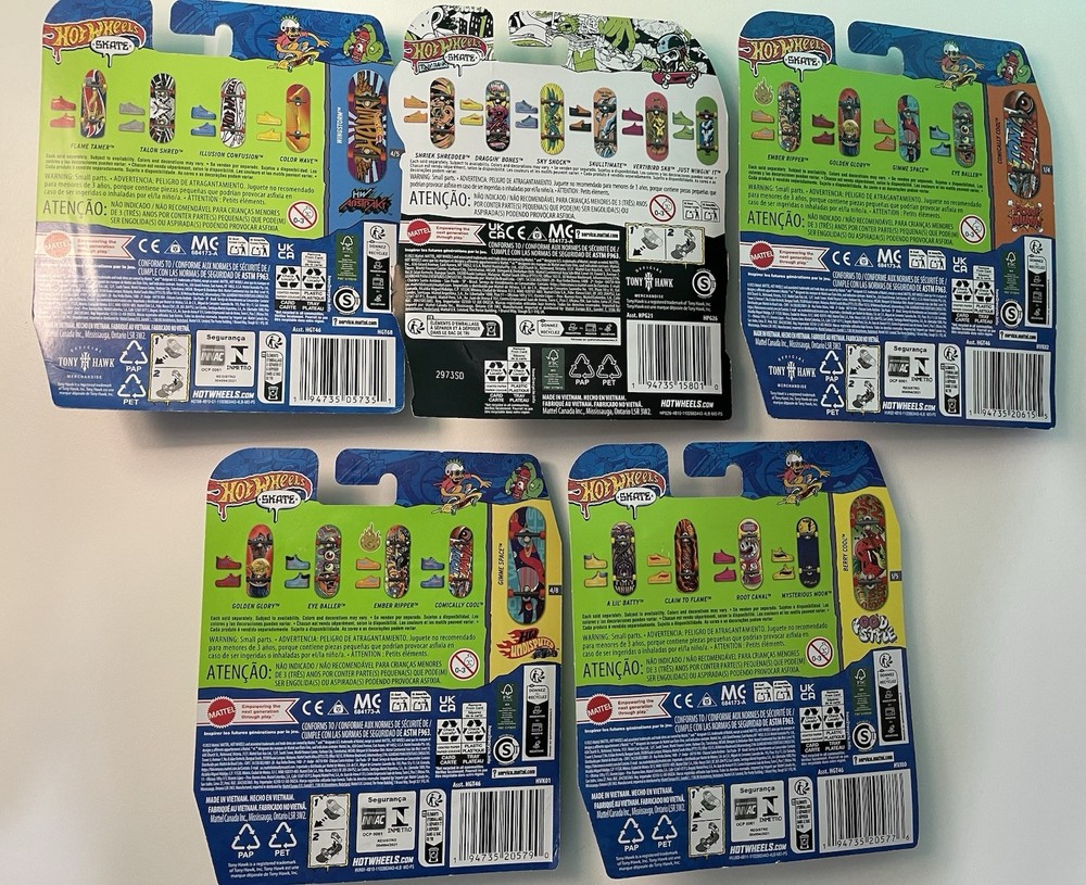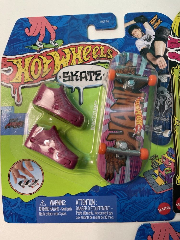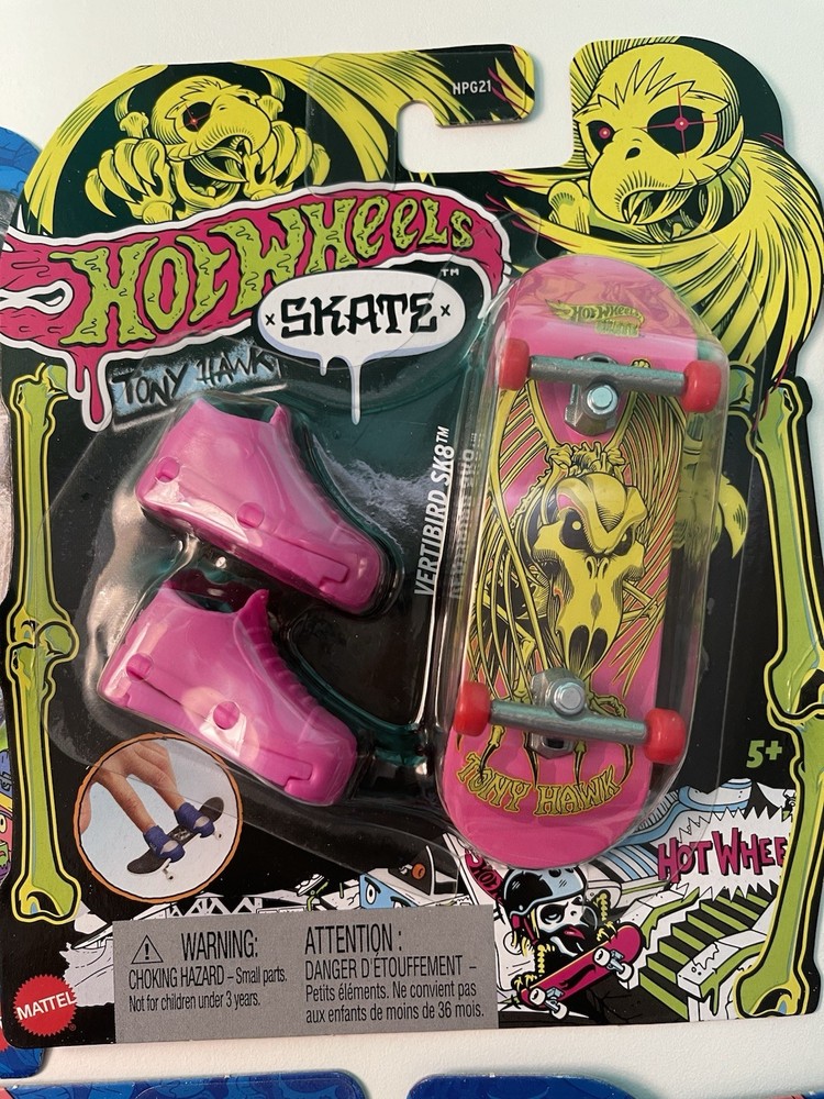 This lot includes 5 Mattel Hot Wheels Skate finger boards featuring Tony Hawk designs, all new in package. Each board is made of plastic and comes in a 1:64 scale. The colorful multi-color vehicles are part of the Hot Wheels brand, catering to both boys and girls between the ages of 5 and 11 years. The set includes unopened boxes, making it a perfect gift for young Hot Wheels enthusiasts looking to add to their collection.