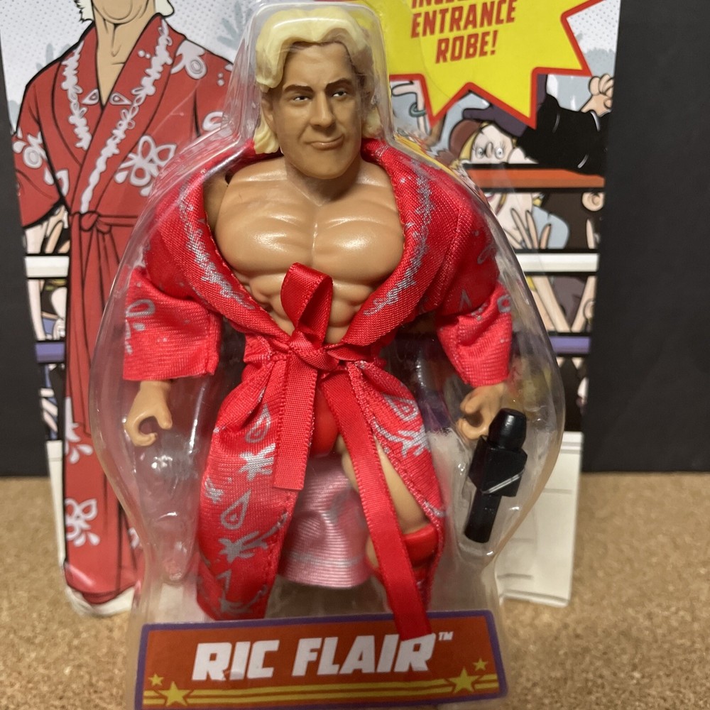 Get ready to add this amazing WWE Superstars Nature Boy Ric Flair Series 1 Mattel 5" Retro action figure to your collection. This collector's edition figure comes with clothes and a boxed packaging, making it the perfect addition for fans of all ages. With a scale of 1:12 and made from high-quality ABS plastic and plastic materials, this figure is a must-have for any wrestling enthusiast. Featuring Ric Flair, one of the most iconic WWE Superstars of all time, this figure is an original 1st edition and is recommended for ages 8 and up. The multicolor design and intricate details make this figure a great addition to any display or collection. Don't miss out on the chance to own this amazing piece of WWE Retro Superstars history.