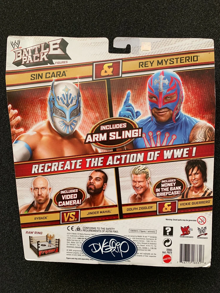 Mattel WWE Battle Pack 22 SIN CARA & REY MYSTERIO 6" figure 2012 (2 Pack) Carded . Not a perfect card. On bottom card left crease. Top card bent forward slightly. Bubble on top right getting loose. See photo.
