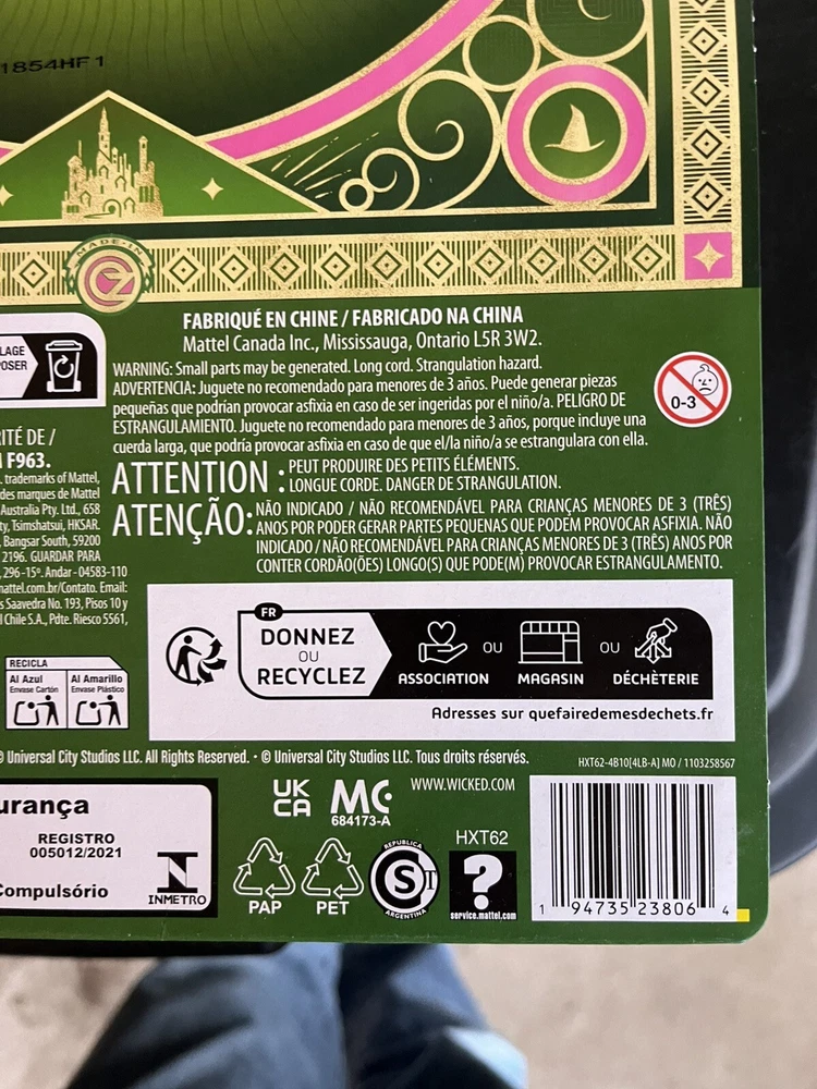 Mattel Wicked Movie Elphaba Fashion Doll URL Error Misprint In Hand Barbie Toy