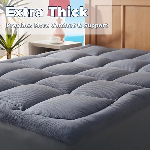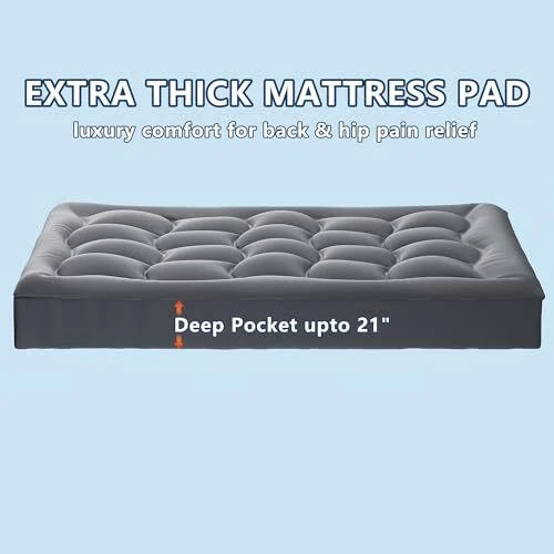 Return Policy Fast Delivery Trusted seller King Mattress Topper Pillow Top Cooling Mattress Pad Quilted Fitted Thick Mattress Cover King Size Bed 8-21" Deep Pocket, Grey Product Description THICK MATTRESS PAD FOR BACK PAIN - The thickness is the first difference you can immediately feel between it and a common mattress pad. This mattress pad is overfilled with premium down alternative filling. Designed for people who need more cushioning, it provides great comfort and support to relieve back pain. Though thick like a foam topper, the breathable fiberfill won’t cause body overheat like memory foam during sleep. With it, your mattress will be as comfortable as those in luxury hotels SUPER SOFT & FLUFFY - This ia an extra thick padded mattress cover. It adds great softness & cushioning to your old mattress. The sleep surface is made of brushed microfiber, soft and no pilling. After embossing, it is more breathable, comfortable and exquisite. The filling is premium down alternative fiberfill which offers great breathability and resilience, making this mattress pad fluffy & cozy always. Machine washable. Highly recommended to order two or more pieces for easy replacement EXQUISITE QUILTING & DEEP POCKET- The Crossed Wave quilting will create a cozy and vibrant vibe for your bedroom. The wrap around knitted pocket stretches upto 21 inches which fits mattresses of different depths. 1.6-inch width elastic band can securely hold your wrap in place. Non-slip and noiseless, ensuring you get an uninterrupted sleep all night UPGRADE YOUR MATTRESS - Don't hesitate to try this extra thick mattress pad, you will be impressed by the comfort & support it brings to your bed. Also it is a decent holiday gift for your spouse, parents and friends (Well packaged in a sturdy box). ⚫️Notes: The pad comes vacuum-packed. It looks not so fluffy when you open it. Please machine wash & tumble dry it on low heat to make it fluffy again CHOICE WON’T REGRET - is professional in providing high-quality bedding products. We are committed to improving your sleep by thoughtful innovations. This king (78”x80”) mattress pad is for master bedrooms, couples who need more space. Besides this Extra Thick Mattress Pad, we also offer ⚫️Waterproof Mattress Pad - with an innovative waterproof lining which protects your pricy mattress against water or urine Shipping Returns Payment Shipping Shipping is FREE to all addresses other than APO/PO boxes in the lower 48 states. All our stock ships from US-based warehouses. Shipped via USPS or UPS (depending on location and package weight) Unless stated otherwise, all orders will ship within 24-72 hours of your payment being processed. Check our feedback to see the great reviews of FAST shipping we offer. Returns Seller does not accept returns Payment We currently accept payment via eBay managed payments only. Once payment is cleared, we will dispatch your shipment within 1-3 business days. Please refer to the "Shipping" tab for more information regarding shipping speed to your destination.