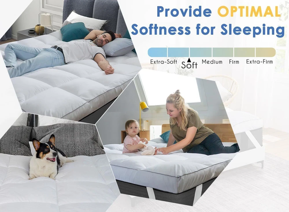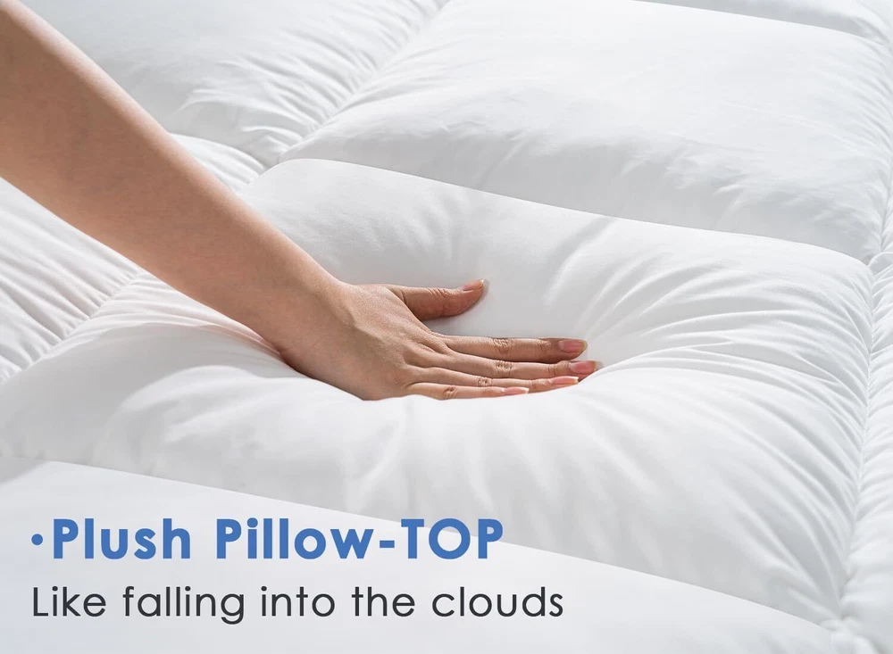 Color Classic - Square White Size Queen Fabric Type Polyester Special Feature Pillow Top About this item Polyester Soft Pillow Top: Indulge in the luxurious softness of our pillow top mattress topper. The soft and fluffy fill adds a cloud-like comfort to your bed, transforming even the firmest mattress into a plush haven. Experience a truly restful sleep with the extra layer of coziness our topper provides. Pressure-Relieving : Filled with high-density down alternative, our mattress topper is designed to relieve body pressure and provide exceptional support. Enjoy the benefits of a restful sleep as the topper conforms to your body, alleviating pressure points in areas such as shoulders, back, and hips. Invest in your well-being with our pressure-relieving mattress topper. Affordable Enhancement: Upgrade your sleeping experience without breaking the bank. Our mattress topper offers an affordable and easy solution to revitalize a hardened mattress. Instead of investing in an entirely new mattress, enjoy the cost-effective and luxury of our topper for an instant improvement in comfort. All-Season Breathability: Enjoy optimal comfort throughout the year with our mattress topper's excellent breathability. Crafted with materials that promote air circulation, it keeps you cool in the summer and cozy in the winter. Enjoy restful sleep in any season without overheating, making it the perfect addition to your bedding. Color Classic - Square White Size Queen Fabric Type Polyester Special Feature Pillow Top Closure Type Pull On Product Care Instructions Dry Clean Only Water Resistance Level Not Water Resistant Age Range (Description) Adult Material Polyester Thread Count 400 UPC 631145950471 Product Dimensions 60 x 80 x 3 inches