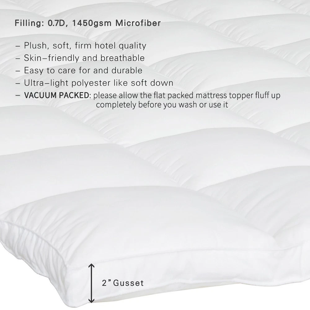 【2” THICK TOPPER FOR MATTRESS】: Perfect solution to a too-firm foam mattress. This firm enough mattress pad provides extreme comfort, soft and fluffy like sink in to a virtual cloud. Hotel Quality and Big Surprise for a lovely sleeping time 【Perfectly Fits Mattress】:4 power band elastic ensures a secure fit and grip on any mattresses and is perfect for power bases.The elastic fabric band will fit up perfectly to 22’’ mattress. 【Upgrade your mattress 】:This topper has gone through several improvement base on millions of feedback to meet your high standard demand. REFRESH IT】: Over filled mattress topper was vacummed for convenience, please slightly shake and pat the tope for the maximum fluff, and place the topper on the flat surface for 24 hours. 【100% CUSTOMER SATISFACTION】: 30-Days Money Back In the event that you'd like to return your purchase which is already slightly stained or unusable, please mark the outer packaging either with a sticker or by using a marker that reads: "This product is not fit for re-sale". In this way, Amazon warehouse staff can see at first glance that the item cannot be re-packaged and sold on to another customer.