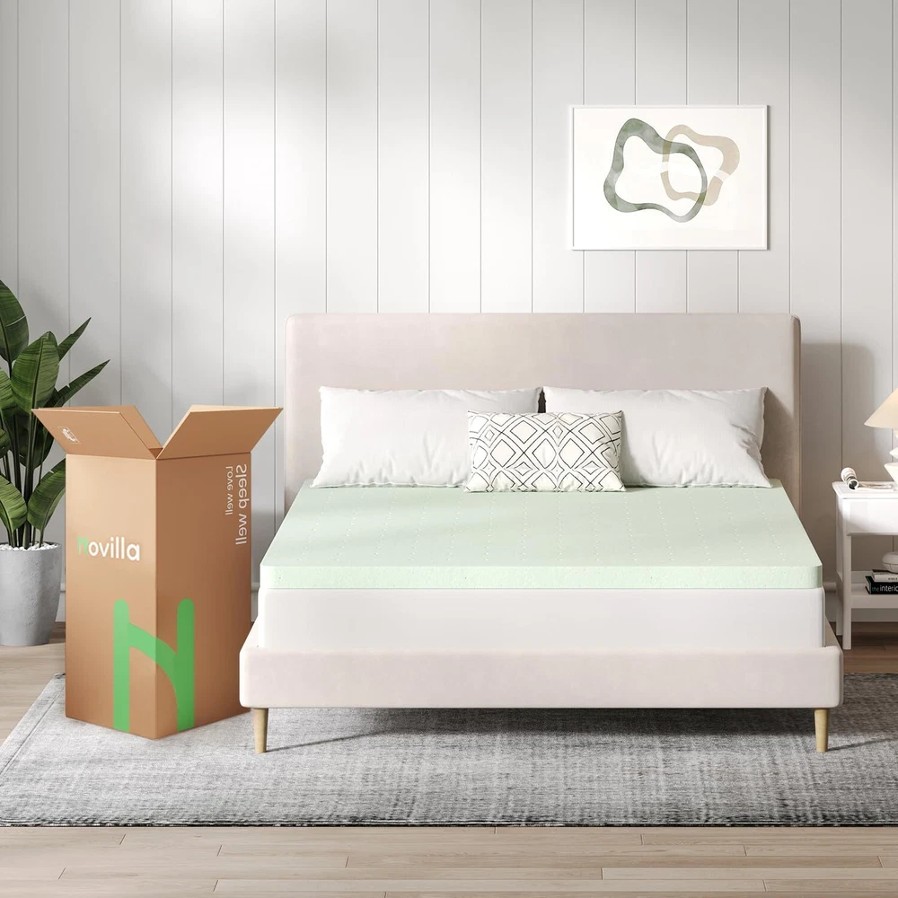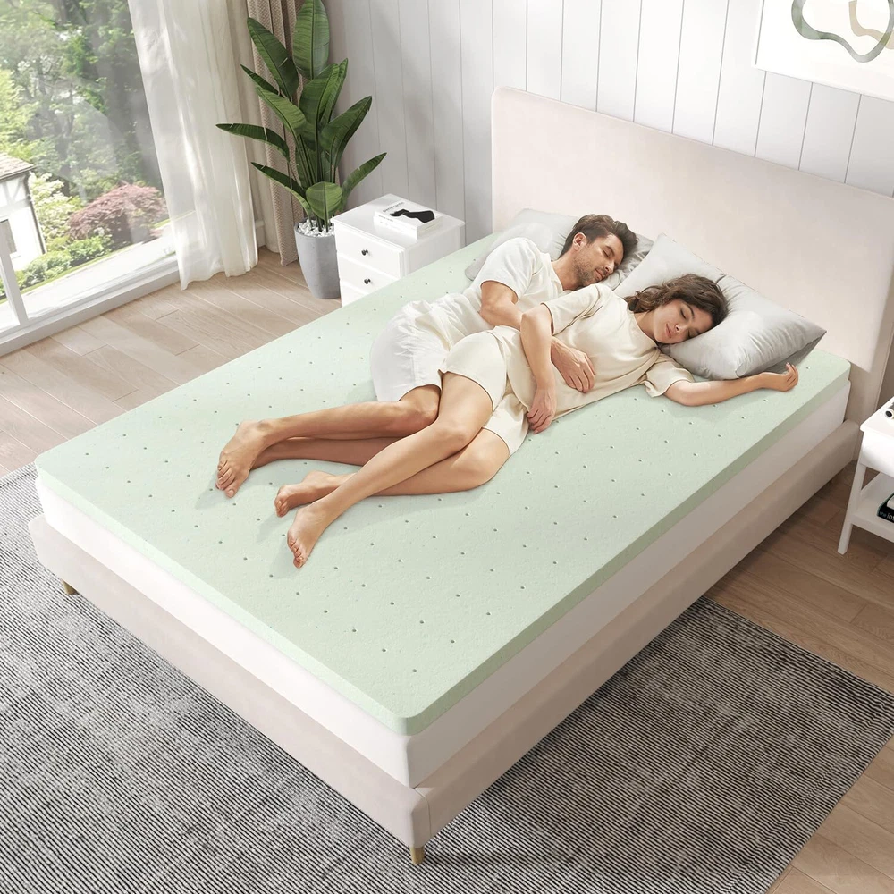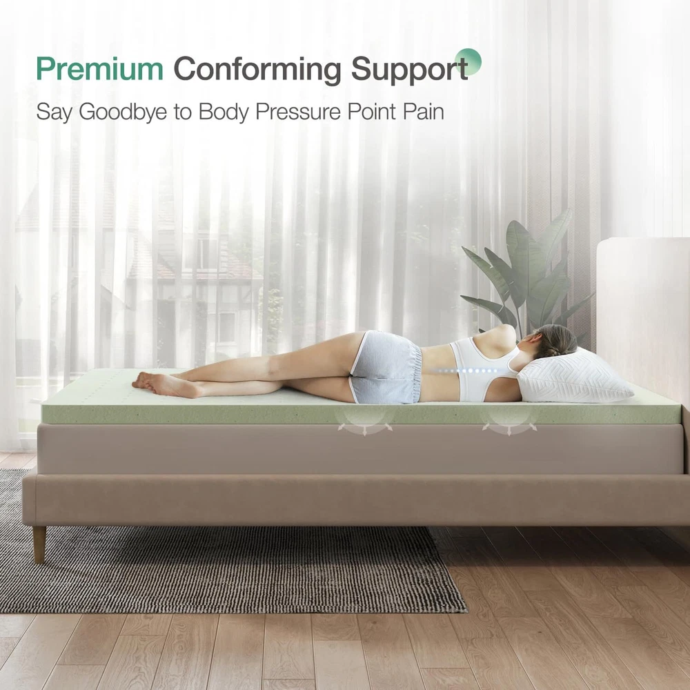 Are you looking for a suitable mattress topper to improve your sleep experience? Combined with CertiPUR-US certified -infused memory foam and supportive high-density foam, mattress topper provides you with cooling sleep comfort and the perfect balance of firmness tailored to your needs. The mattress topper is available in 5 sizes-Twin, Twin XL, Full, Queen, King, perfect to upgrade your master bedroom, ' room, guest room or college dorm. Also, The portable mattress topper is an ideal option for temportary sleep, whether you are relaxing on the sofa at home or going camping in outdoors. It is convienent to take the topper anywhere you want, adding softness, breathability and comfort to your sleep. Simply allow the compressed foam mattress topper to fully expand for 48 hours. If you have any inquiries about the mattress topper, Customer Support Team are always here to help you. What's in the box? 1 x mattress topper 1 x card 1 x package opener Note: 1. The expansion time will vary as the surrounding. Your mattress topper takes slightly longer time to regain its full size in cold temperature. 2. Sleep experience about firmness will be affected by individual body weight, shape and sleeping habits. BREATHABLE & COOLING - The open-cell ventilated design is skillfully designed to enhance airflow and dissipate body heat. The -infused mattress topper keeps you in a cozy sleep climate. You will wake up with energy and vitality to tackel the day effectively. PRESSURE & CONTOURING SUPPORT - Memory foam adapts to your body curves to align spine and relieves pains on back and hip. High-density support foam helps to distribute body weight evenly and provides a greater firmness to strongly support your body for a high-quality sleep experience. CertiPUR-US CERTIFIED - The durability, content and emissions of our twin matress topper has been certified by CertiPUR-US. For such safe and eco-friendly mattress topper, it is definitely a good choice for individuals with sennsitive skin. Please purchase with confidence. INCREASE SOFTNESS AND COMFORT - The 3-inch memory foam mattress topper twin is the perfect option for offering extra softness and comfort to any mattress. Whether you feel like your mattress is too firm or leaves you with aches in the morning, simply placing it on the top of your mattress or under your mattress cover. WORRY-FREE PURCHASE - The mattress topper comes with 3-year limited from the day of purchase. Allow the twin mattress foam topper to fully expand to its original shape within 48 hours. Please feel free to Customer Support Team if you have any problem or not satisfied with the item. We are always here to help you.