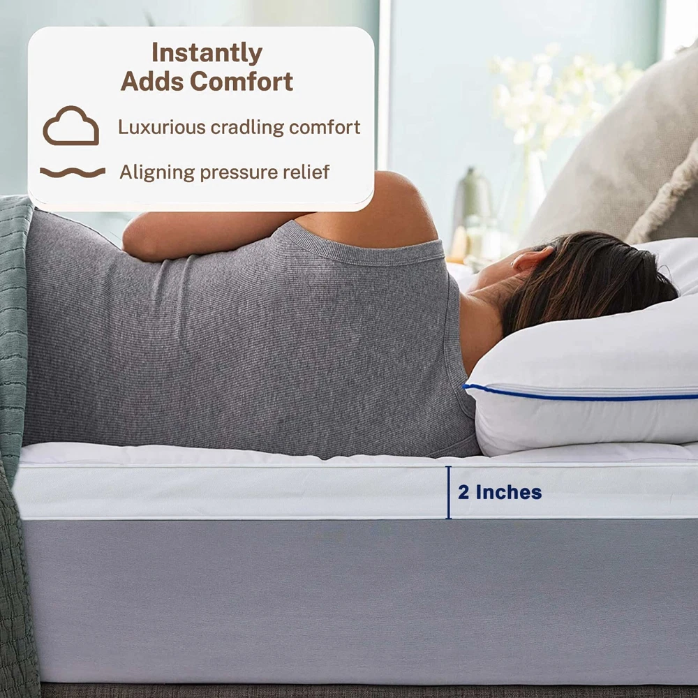 Cotton Passion Visit Store Store Sale Feedback Product Description Description: Enhance your sleep experience with our Plush Mattress Topper, designed for added comfort and support. Crafted to elevate your slumber, this topper offers an extra layer of softness and relaxation. With elastic straps for effortless placement, it ensures a snug fit for a restful night's sleep. Made from hypoallergenic microfiber fabric in pristine white. Key Features: Enhanced softness and comfort with a plush polyester filling. Durable construction using high-quality materials for lasting support. Elastic straps ensure a secure fit without shifting. Easy care: Machine washable cover with fluffable synthetic down filling. OEKO-TEX Certified for safety and eco-friendliness. Optimal Fluffiness of Topper: Our approximately 2-inch thick mattress topper boasts a 400 GSM filling Gusset for added comfort. Upon arrival, conveniently packaged in a bag, it needs a little time to reach its full potential. Allow it to breathe and restore its natural thickness by laying it out for a few hours. For superior fluffiness, a brief stint in sunlight works wonders. Softness and Polyester Filling: Indulge in luxurious softness with our mattress topper, featuring a plush polyester filling that provides an extra layer of comfort for a rejuvenating sleep experience. Easy Fit Straps: Elastic straps facilitate easy placement and ensure a secure fit, preventing the topper from shifting during the night, ensuring a comfortable sleep. Durable & Secure: Crafted from hypoallergenic microfiber fabric, this topper ensures durability and lasting support, maintaining its quality wash after wash. Size Variation: Available in multiple sizes for a perfect fit: Twin: 39x75 inches Full: 54x75 inches Queen: 60x80 inches King: 78x80 inches Package Includes: 1 Mattress Topper OEKO-TEX Certified Product: This mattress topper is OEKO-TEX certified, assuring safety and eco-friendliness, aligning with responsible and environmentally conscious manufacturing standards. Our Bedding Collections Topper & Protectors View Blankets View Bedding & Sheet View Curtains View 100% Customer Satisfaction We prioritize customer satisfaction above all else. Our goal is to ensure that every customer has a positive experience with our products and services. If you have any issues or concerns, our dedicated customer support team is here to assist you. Fast and Free Shipping We offer fast and free shipping on all orders, ensuring that your purchases reach you in a timely manner. Additionally, we have a 30 Days return policy, making it easy for you to return or exchange any items if needed. OEKO-TEX Certified Bedding What sets us apart is our commitment to quality and sustainability. We are proud to offer OEKO-TEX certified bedding, which means our products have been tested and certified to be free from harmful substances. mattress topper mattress topper queen queen mattress topper king size mattress topper mattress topper full king mattress topper mattress topper king queen size mattress topper twin mattress topper full size mattress topper wool mattress topper mattress topper twin full mattress topper gel mattress topper cooling mattress topper mattress topper king size extra firm mattress topper twin xl mattress topper mattress toppers electric mattress topper 4 inch mattress topper hard mattress topper cal king mattress topper foam mattress topper queen wool mattress topper king cooling gel mattress topper single mattress topper california king mattress topper mattress topper cover only memory foam mattress topper double mattress topper full size thick mattress topper queen size memory foam mattress topper purple mattress topper twin bed mattress topper twin size mattress topper mattress topper twin xl super king mattress topper mattress topper cover mattress pads mattress pad queen mattress pad mattress pad queen mattress pads & toppers twin mattress pad king mattress pad mattress pad full full size mattress pad queen size mattress pad water heated mattress pad waterproof mattress pad mattress pad king king size mattress pad pillow top mattress pad queen cooling mattress pad pillow top mattress pad full foam mattress pad full mattress pad mattress pad twin queen mattress pad cover california king mattress pad bed topper matresses topper queen toppers queen topper bed topper queen queen bed topper bed topper full king size topper matresses topper full full size bed topper