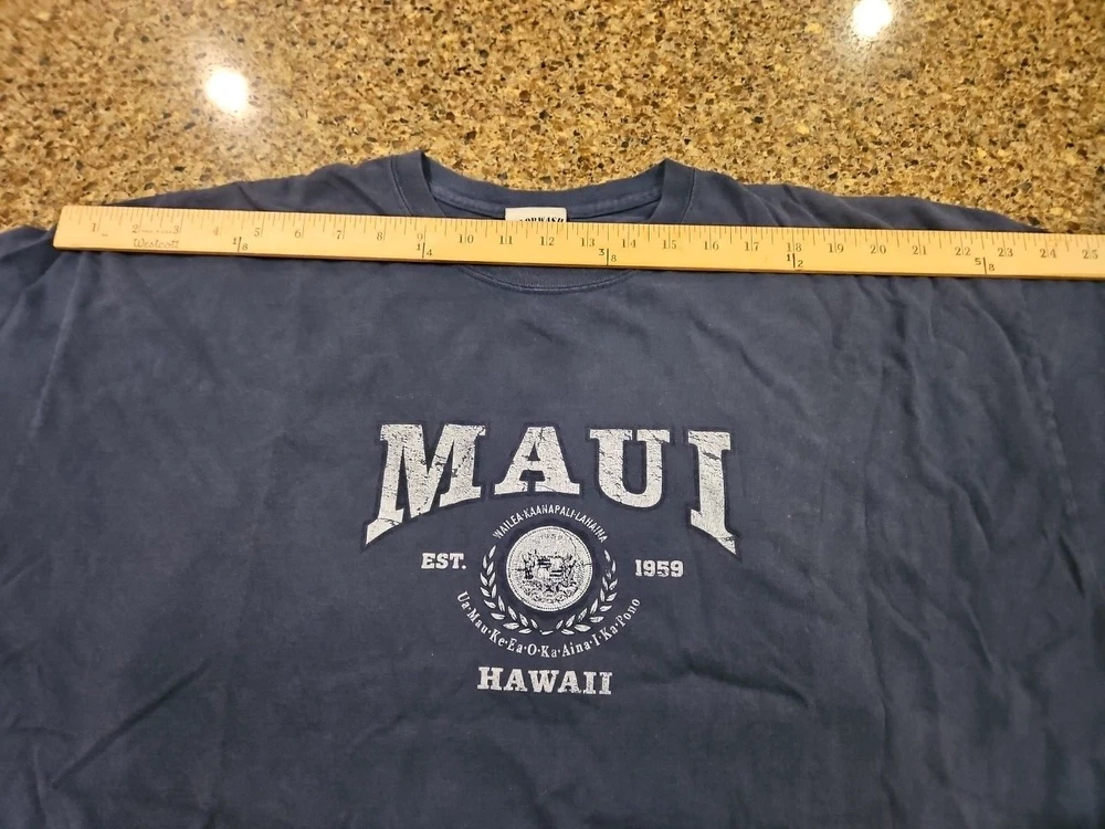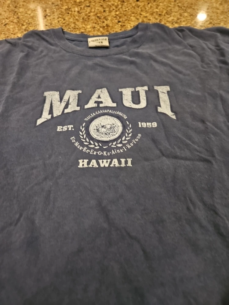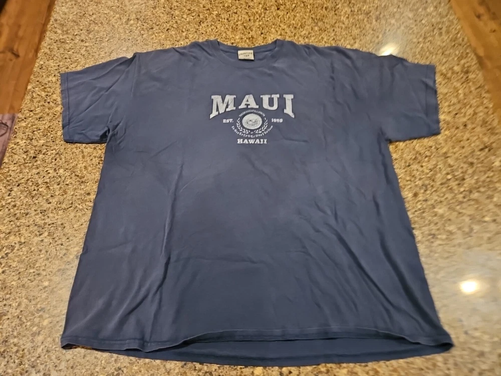 Maui Hawaii T Shirt Short Sleeve Blue Men's 2X 100% Cotton Made in Hawaii