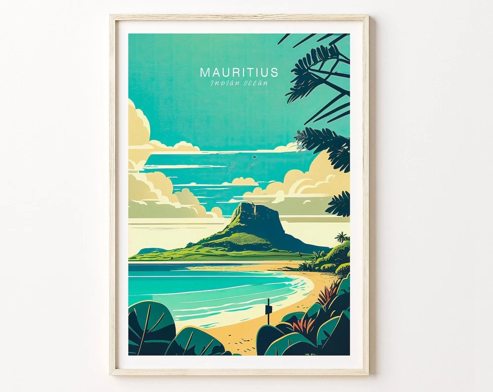 Mauritius Travel Poster Wall Art Mauritius Poster Mauritius Indian Ocean Wall Art Minimalist Travel Print Travel Gift Wedding Gift Material: Premium luster photo paper Print type: Inkjet printing One side printed + The finish provides the highest possible resolution and color saturation + Lasts up to 200 years in color and 400 years in black-and-white + Printed on high-quality resin-coated photo base paper medium + Posters can be hung with double-sided tape, tacks, or framed + Hand washing with a gentle cry cloth is recommended for extended durability I will hand select the best choice of paper for your chosen design to ensure top quality results for a beautiful, bright and luxurious print. All prints are sealed in cellophane slips for protection during transportation, and are shipped in a protective cardboard envelope.