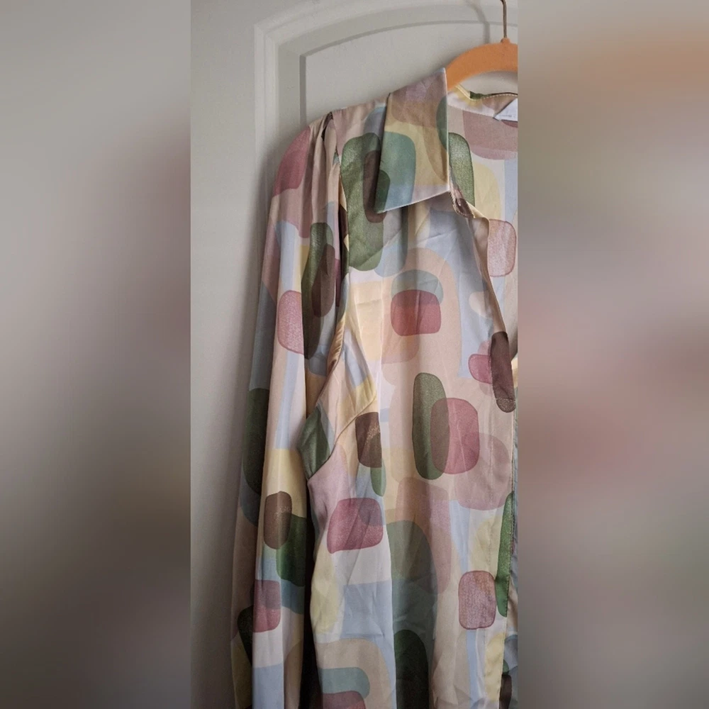 Condition of item not as expected… Fastener on neck has been broken and retied. Much shorter than photo represents. Very wrinkled. Will try to salvage.