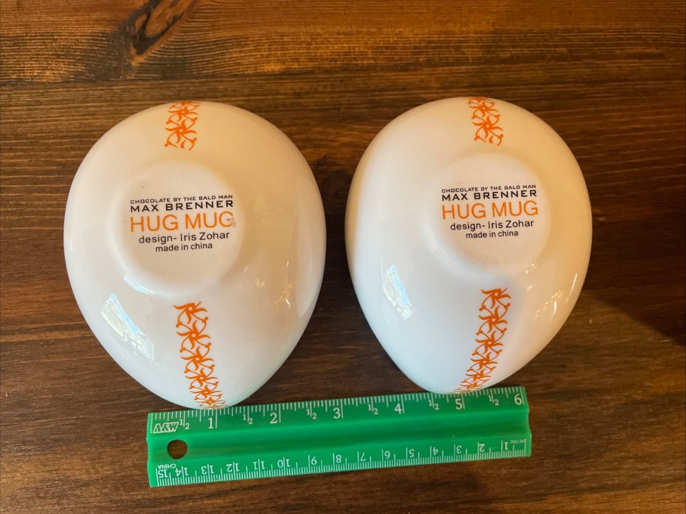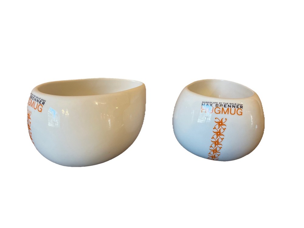 The Unique Max Brenner Hug Mug Hot Chocolate By The Bald Man Cups are a set of two bohemian-style ceramic and porcelain mugs with a white color and 8oz capacity. Perfect for all occasions, these mugs are designed for hot beverages and are made in China. The distinctive brand, Hug Mug, adds a touch of personality to your kitchen or collectibles display. Enjoy your favorite hot chocolate in style with these eye-catching cups that are sure to stand out.