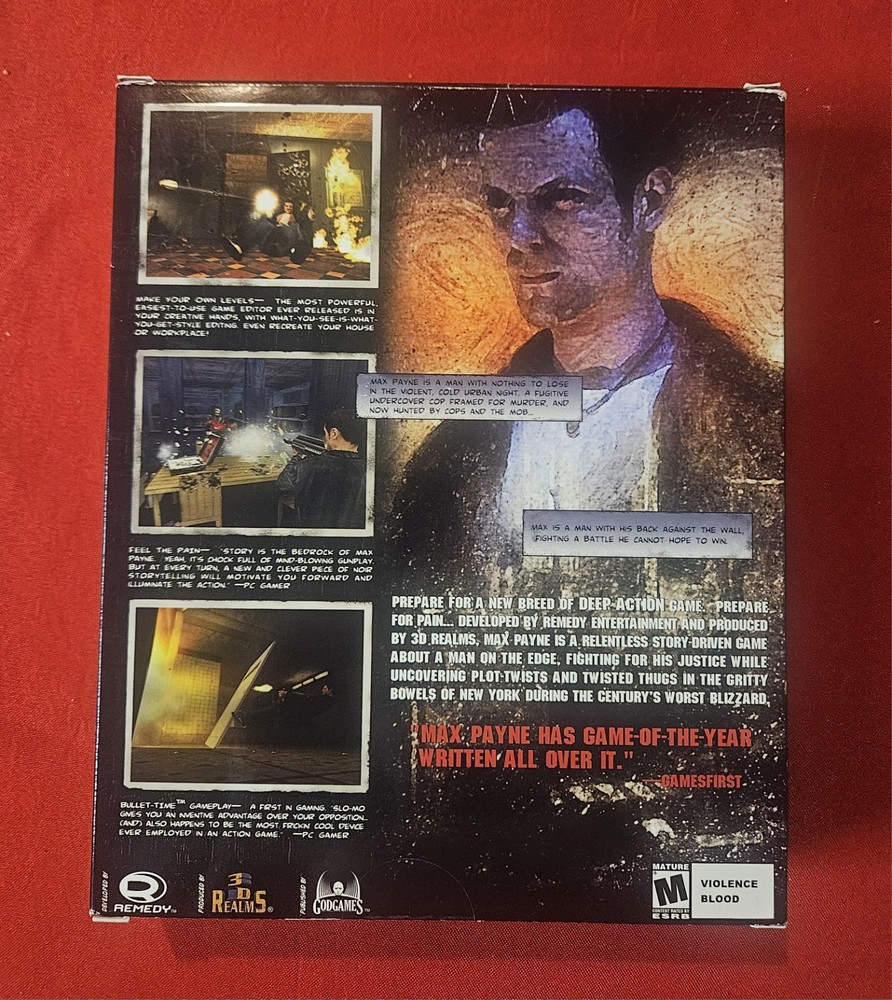 Max Payne for PC is a rare video game from 2001 that comes in a big box retail version with a mousepad included. The game is part of the Max Payne series, known for its shooter gameplay and mature rating. Published by Godgames, this highly sought-after title offers players an immersive experience with its unique storyline and engaging gameplay. Perfect for collectors or fans of the Max Payne series.