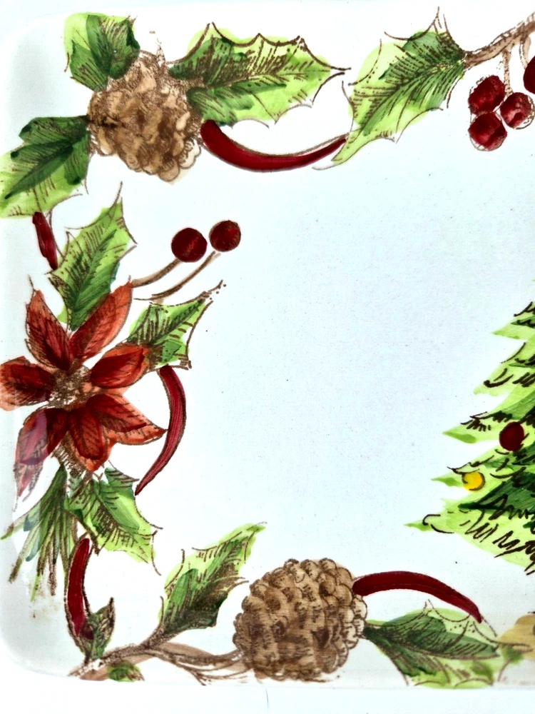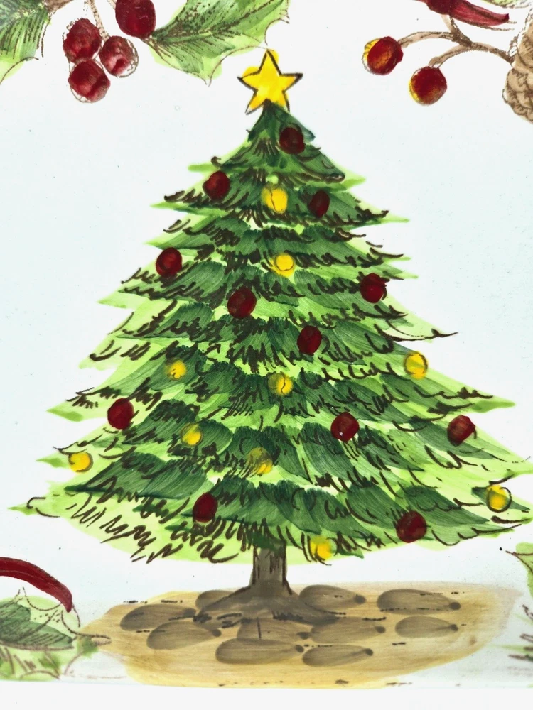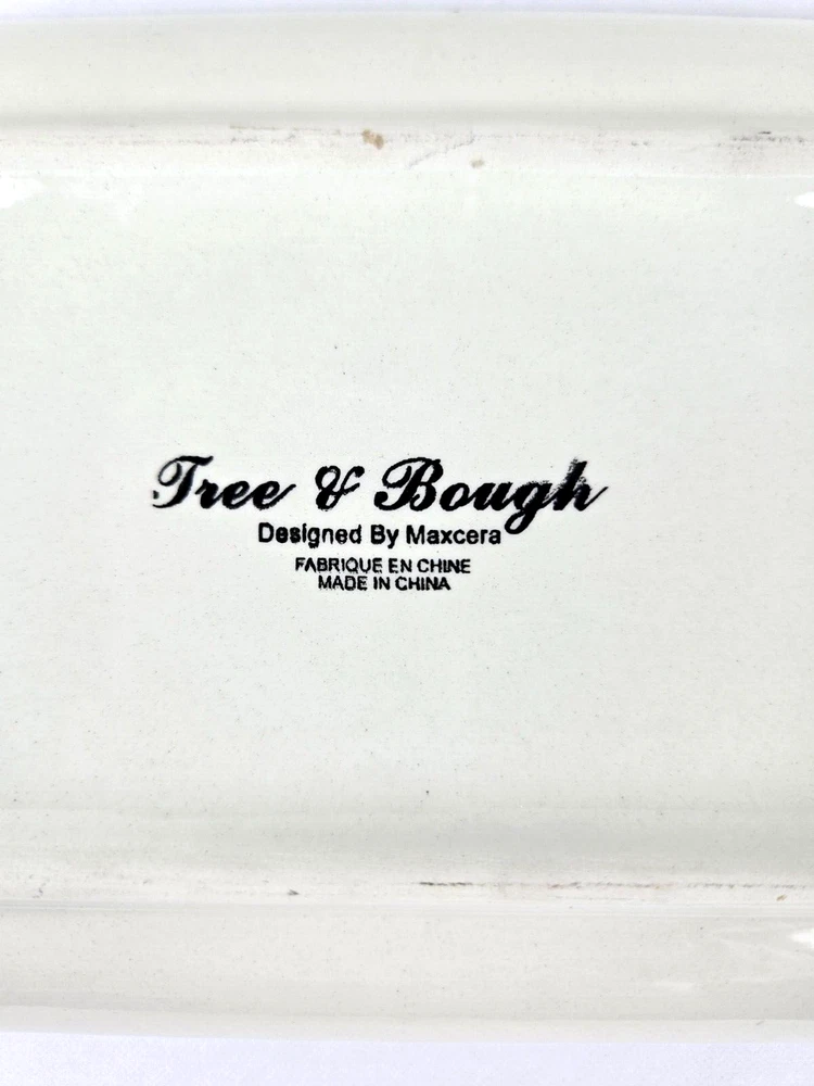 Maxcera Tree & Bough Christmas Tree Appetizer/Snack Plate Maxcera Tree & Bough Christmas Tree Appetizer/Snack Plate is a rectangular ceramic dish with a white glossy finish featuring a multicolored Christmas tree design. It measures 10.75 inches in length and 5.25 inches in width, with a height of 1 inch. The plate is decorated with a festive Christmas theme, perfect for serving snacks, desserts, appetizers, or canapes during the holiday season. Hand washing is recommended for care. We carefully pack each item to prevent breakage. We only charge what the shipper charges and cannot control the shipping costs. We do not accept returns/refunds unless item is not as described per eBay policy or the item arrives damaged or broken beyond anything noted in the condition field or pictures. If you have any questions about any of our listed items, feel free to email us.