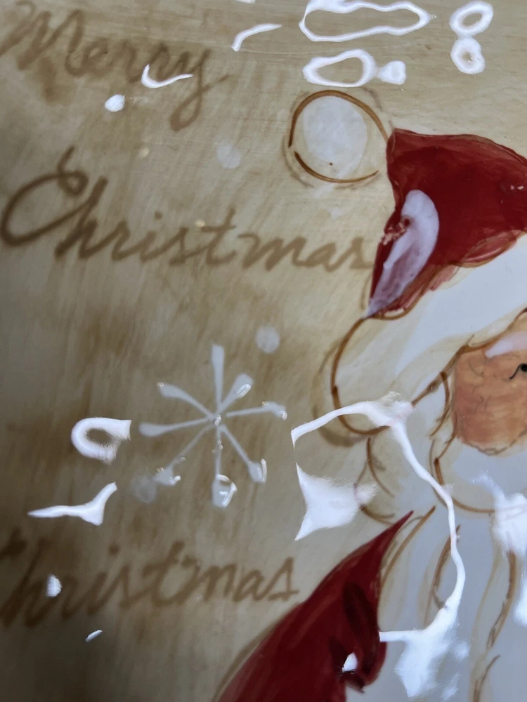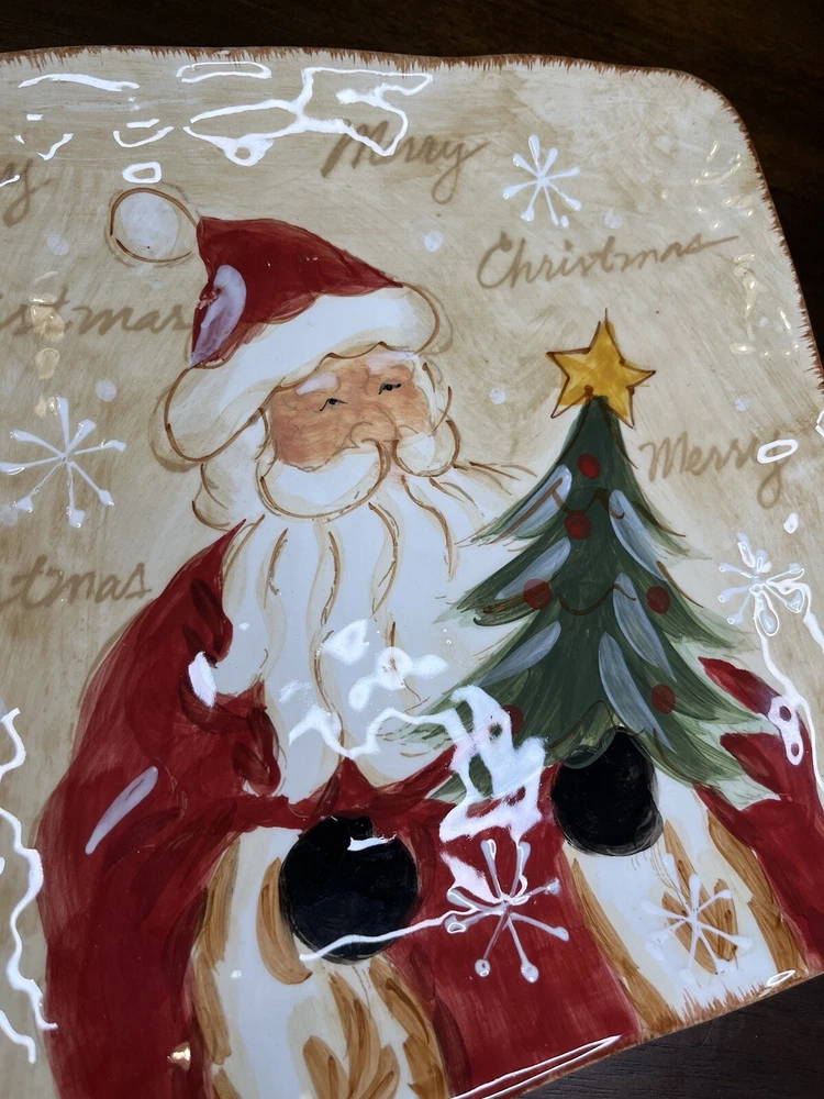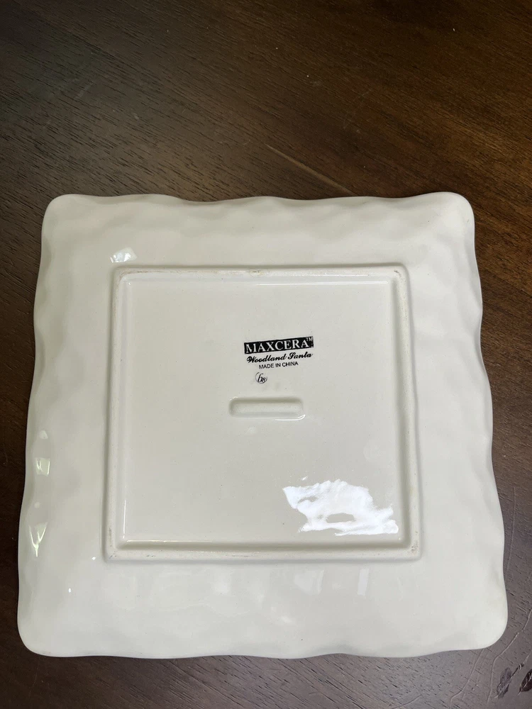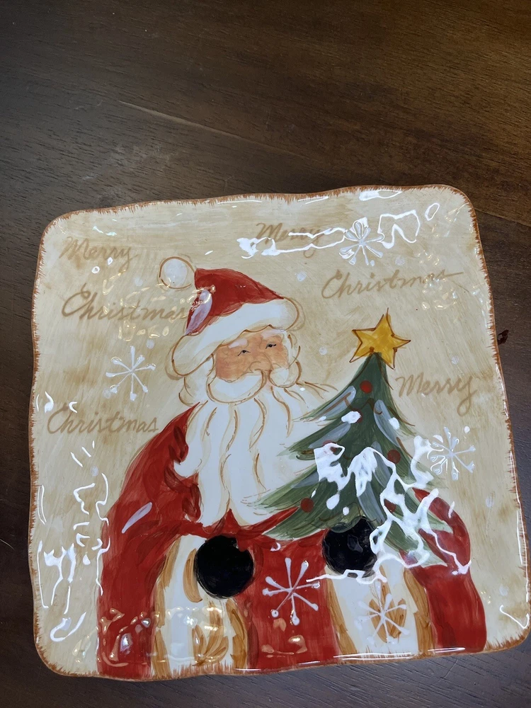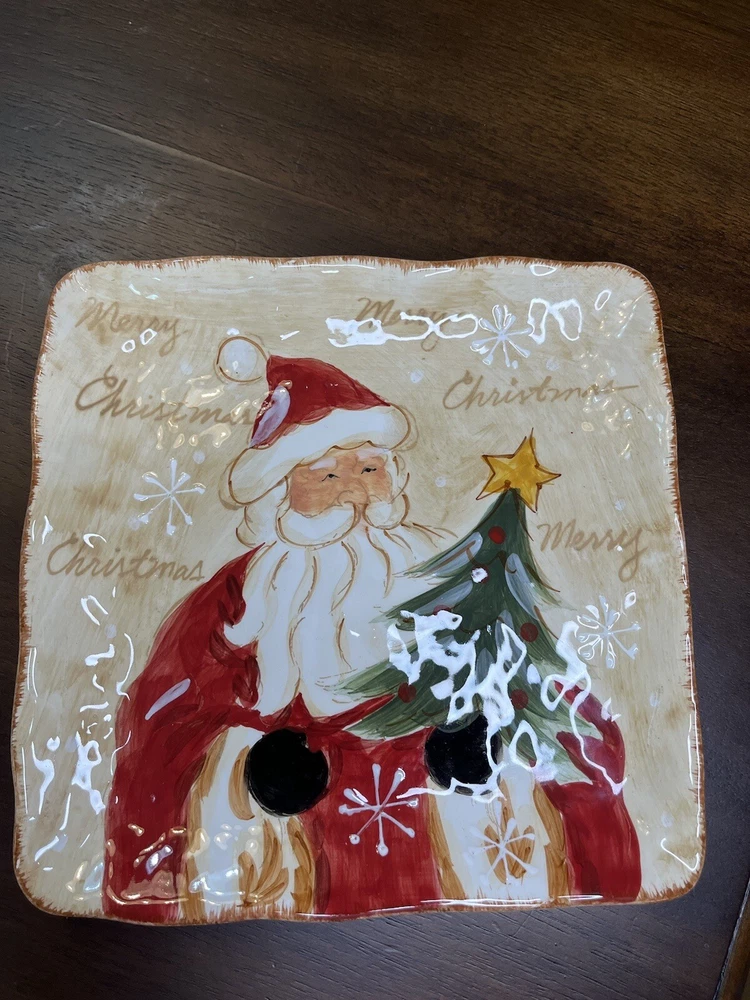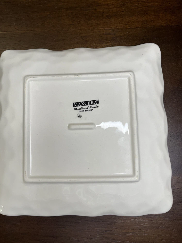 Add some festive cheer to your Christmas decor with this beautiful Maxcera Woodland Santa Square Cookie Salad Dinner Plate. The plate measures 9 inches and features a charming Santa Claus pattern that will surely delight your guests. Made of high-quality ceramic, this decorative plate is perfect for serving cookies, salads, or dinner during the holiday season. The plate has a glossy finish and is handmade with art pottery techniques, making it a unique addition to your collection. The backstamp is printed and the plate is an original from Maxcera's product line. Perfect for contemporary style homes and will make a great gift for someone special.