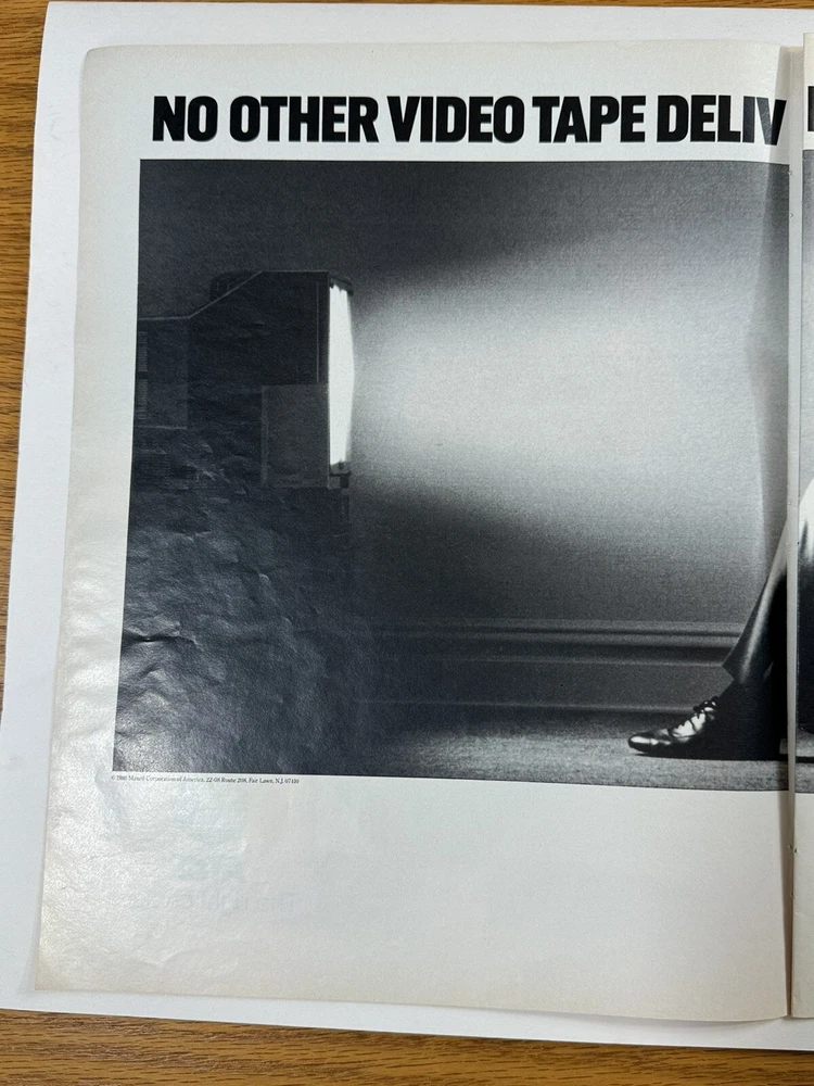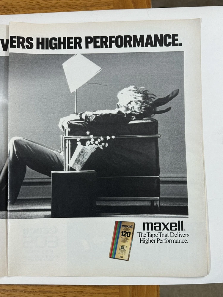 Maxell Blown Away VHS High Performance Tapes Print Ad • 2 Page Black & White Vintage Print Ad / Poster / Wall Art • From 1988 • Size 19 inches wide x 12 3/4 inches high • This ad is very similar to the iconic Maxell Cassette Tape Blown Away ad that came out in the early 80s. Pretty good shape. Pulled from a magazine that had been read, so there is wear. Also there is some toning around the edges. Buyer will receive al the pages that make up the 2 page spread. Selling as is Shipping US lower 48 states only No International Shipping