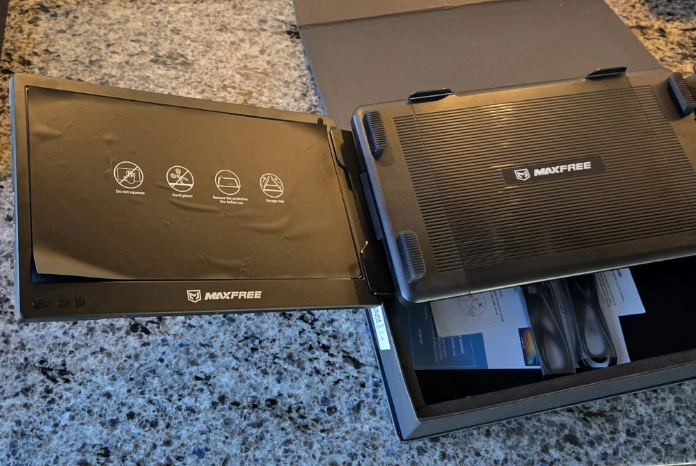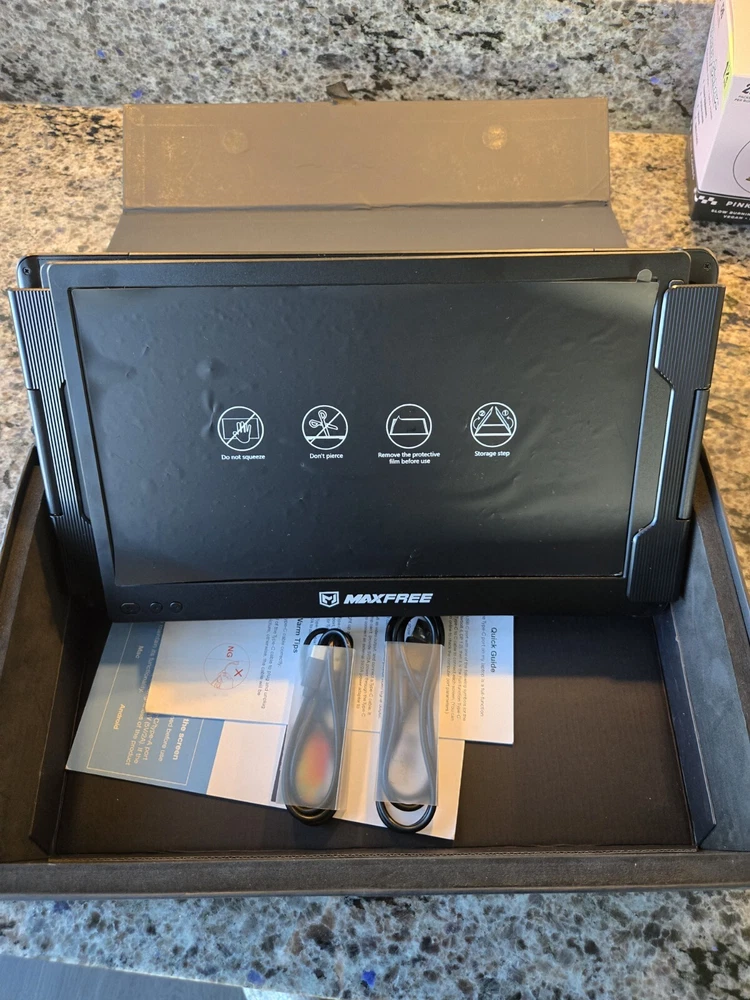 Everything works fine. I had to buy cords to use this. They're less than $3 each on amazon. The monitor size is too small for me so I am upgrading. AGAIN, YOU WILL NEED TO BUY CORDS TO CONNECT THIS. IT WILL COME WITH 2 USB TO USB-C. THAT IS NOT ENOUGH TO TURN EVEN 1 MONITOR ON. SIMPLE GOOGLE SEARCH TO FIND CORDS YOU NEED. BOTH MONITORS USED AND TESTED. CORDS ARE IN WRONG IF YOU CANT GET IT TO SHOW. The Maxfree X2 is an 11.6-inch triple portable laptop monitor, perfect for expanding your screen real estate on-the-go. Its portability makes it easy to set up and use wherever you need additional screen space for work or entertainment. This monitor is designed to be lightweight and easy to carry, offering convenience for users who need a multi-screen setup outside of a traditional office environment.