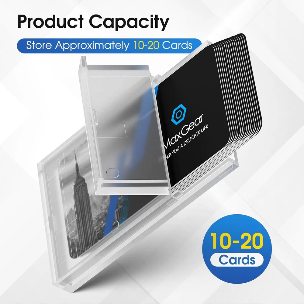 Maxgear 3 Pack Plastic Business Card Holder, Clear Card Case for Men & Women Sli Durable and Safe Material: This business card holder is made of PP 5 grade plastic, wear-resistant and never be out of shape. This material is used to make microwaveable food container to achieve maximum safety and durability. You don't need to be worried about the case scratching your pocket and backpack. 3 Pack for Large Capacity: Stores up to about 10-20 cards per case, 3 pack for 30-60 cards (depend on your cards' thickness). Minimalist & Functional Design: Minimalist design will not draw your client's attention to your business card holder but on your card. The clear name case makes it easy to identify what and how many cards you have. Flick lid can protect your name cards from dust. Slim & Super Light: The clear business card case allows you to bring it along in your pocket, handbag, briefcase without getting bent and adding any burdens. Great choice for the everyday commuter and traveler. Multifunctional Card Holder: Our business card holder is mainly designed for business cards, but it is also suitable for credit cards, ID card, driver’s license, gift cards or any other cards within the size of 3.6 x 2.4 inches. Shipping We offer FREE shipping on all orders! We ship within Three business days of payment, usually sooner. We use a selection of shipping services such as UPS, FedEx, USPS etc. We only ship to the lower 48 states, no APO/FPO addresses or PO Boxes allowed. Local pickups and combined shipping options are not provided at this time. Return You can return a product for up to 30 days from the date you purchased it. Any product you return must be in the same condition you received it and in the original packaging. Please keep the receipt. Customer satisfaction is very important to us. If you have any problem with your order, please contact us and we will do our best to make you satisfied. Contact Us If you have any queries, please contact us via ebay. We usually respond within 24 hours on weekdays. Please visit our eBay store to check out other items for sale! Thank you for shopping at our store.