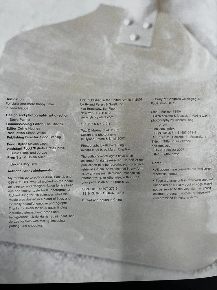Item Weight: 28.9 Oz Publication Year: 2007 Number of Pages: 144 Pages Item Height: 10 in ISBN: 9781845973735 Illustrator: Richard Jung Type: Cookbook Item Width: 0.5 in Signed: No Book Title: Pizza : Calzone and Focaccia Publisher: Ryland Peters & Small gtin13: 9781845973735 Genre: Cookbooks, Food & Drink, Cooking Narrative Type: Nonfiction Country/Region of Manufacture: China Item Length: 9 in Language: English Book Series: N/A Author: Maxine Clark Topic: Cooking, Regional & Ethnic / Italian, Courses & Dishes / Pizza, Pizza Recipes Format: Hardcover Vintage: Yes Features: Dust Jacket, Illustrated Original Language: English Intended Audience: Young Adults, Adults