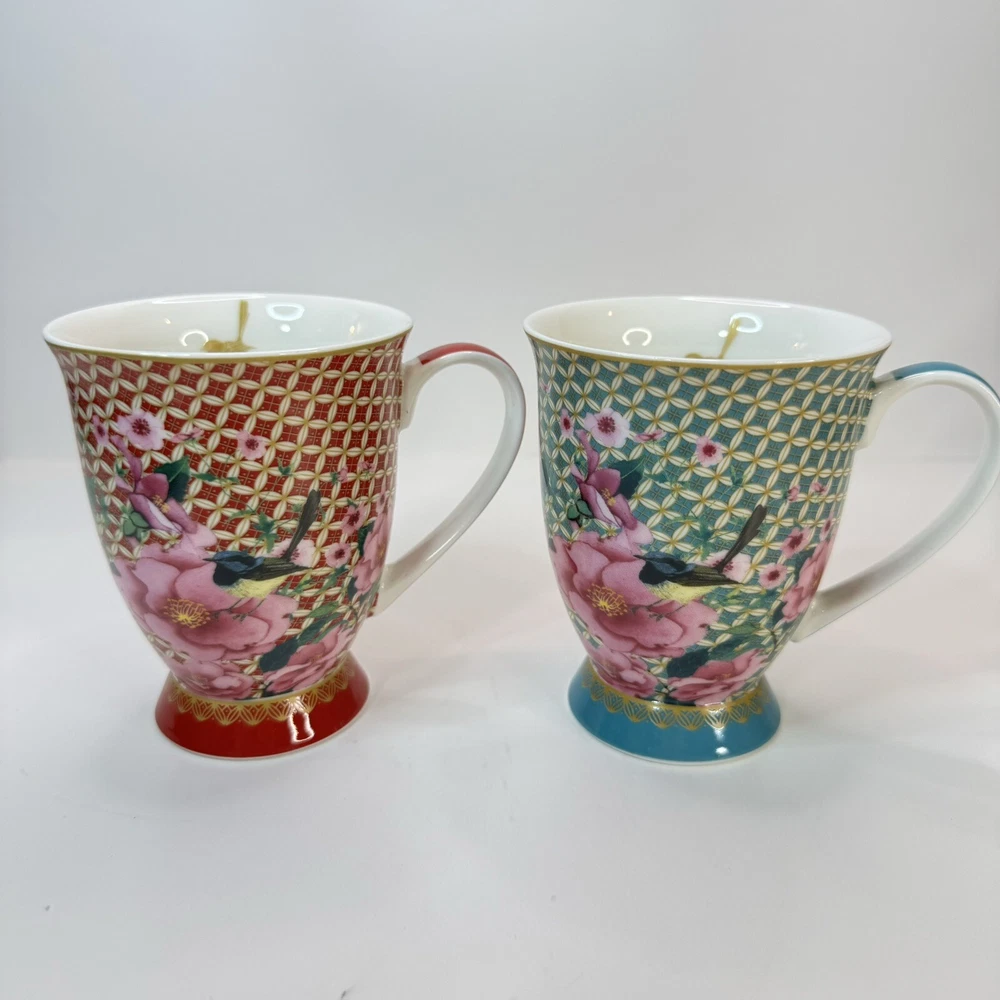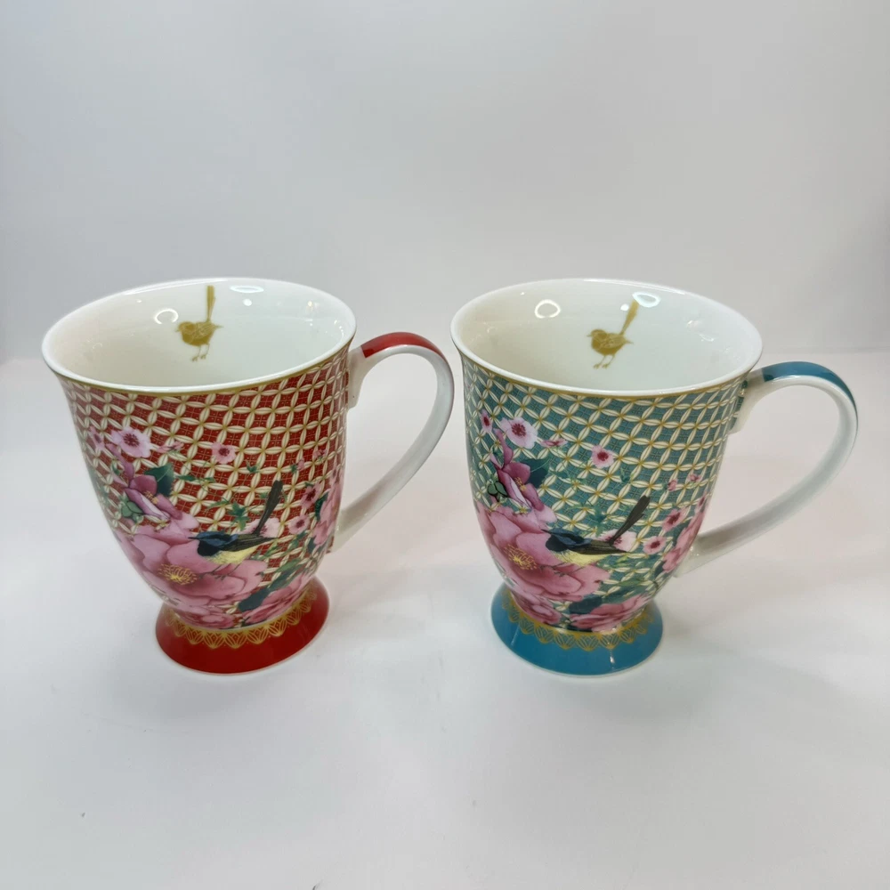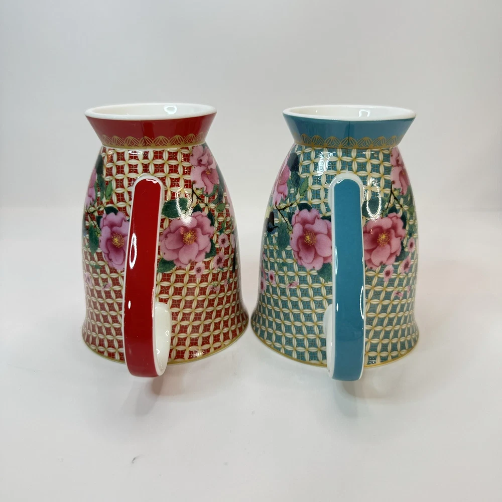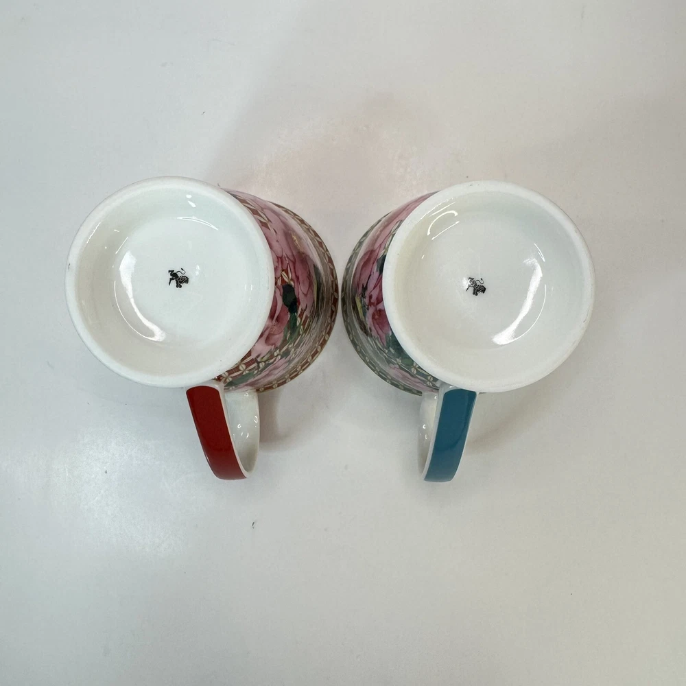 Elevate your morning ritual with the Maxwell & Williams TC Silk Road Mugs. Crafted from high-quality porcelain, this set promises a touch of elegance to your coffee or tea experience. Each mug features a vibrant, multicolored floral pattern that bursts with life, complementing any occasion whether it's a cozy morning or an after-dinner treat. The set includes two 300 ml mugs, presented in a striking red and teal color scheme that is sure to add a splash of color to your kitchen collection. The beaker design is both contemporary and functional, suitable for both hot and cold beverages. Designed by Designer Homeware Distribution GmbH, these mugs bring a blend of style and utility to your tabletop. Excellent used condition.