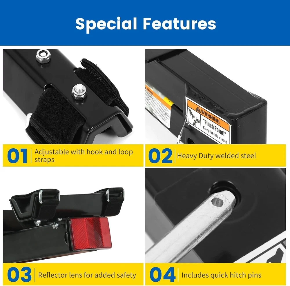 About this item Secure Bike Transportation: Safely transport up to 4 bikes with ease. The rack's towing capacity is 150 lbs and includes a hitch pin for secure attachment. An added reflector enhances safety during travel Convenient Swing-Down Feature: The swing-down feature provides effortless access to the rear of your vehicle, ensuring convenience when needed. Ideal for vans, SUVs, pickup trucks, and sedans with receiver hitches Easy Installation: Installing the MaxxHaul Towing Products 70210 Deluxe 4-Bike Hitch Mount Rack is a breeze and takes just minutes. The support arms, equipped with adjustable hold-down straps, firmly secure and transport your bikes Broad Hitch Compatibility: This rack fits 2" x 2" hitch receivers, offering versatile compatibility with a variety of vehicles Durable Construction: Built from rigid all-steel construction and powder-coated for durability, this rack is designed for longevity. The adjustable bike cradle with hook and loop straps ensures secure transportation Compatibility Note: Please note that the 70210 Bike Rack is designed for bikes with a horizontal top bar frame. For different style bike frames, the addition or installation of a horizontal crossbar may be necessary (not included) Weight Limit and Reflector: With a towing capacity of 150 lbs, the rack includes a hitch pin and reflector for added safety Product Description Heavy duty all steel construction bike rack will easily transport up to 4 bicycles. Features padded bike cradles with hook and loop straps to protect bike finish. Shipping We offer FREE shipping on all orders! We ship within Three business days of payment, usually sooner. We use a selection of shipping services such as UPS, FedEx, USPS etc. We only ship to the lower 48 states, no APO/FPO addresses or PO Boxes allowed. Local pickups and combined shipping options are not provided at this time. Return You can return a product for up to 30 days from the date you purchased it. Any product you return must be in the same condition you received it and in the original packaging. Please keep the receipt. Payment We accept payment by any of the following methods: PayPal Please pay as soon as possible after winning an auction, as that will allow us to post your item to you sooner! Feedback Customer satisfaction is very important to us. If you have any problem with your order, please contact us and we will do our best to make you satisfied. Contact Us If you have any queries, please contact us via ebay. We usually respond within 24 hours on weekdays. Please visit our eBay store to check out other items for sale! Thank you for shopping at our store. Disclaimer We are working with different suppliers in USA to deliver the item to your doorstep. If you have any issues regarding the item, Feel free to ask.