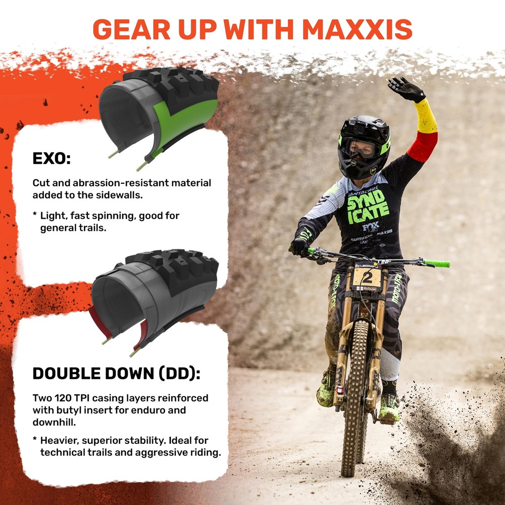 This tire is a beast on the trails! The grip is insane, whether climbing or cornering hard, and the EXO sidewalls hold up against rocks and roots. The dual compound tread lasts way longer than expected, and it sets up tubeless super easy. Perfect balance of speed and traction for aggressive riding—highly recommend for rear wheel use!