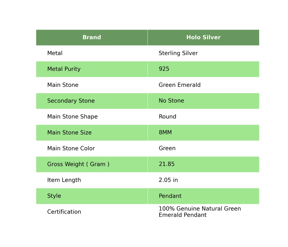 Welcome to Holo Silver Green Emerald Gemstone Indian Jewelry 925 Sterling Silver Pendant For Women Handmade Pendant, Sterling Silver Pendant, Green Emerald Pendant, Handcrafted Pendant SKU : PP-36-8 Gemstone : Green Emerald Stone Shape : Round Metal Purity : 925 Sterling Silver Length : 2.05 Inches Width : Inches ___________________________________________________________________ Shipping Handling - Charge - Free ( Condition apply ) Handling Time - One business day . Delivery Time - 3 to 23 Days ( Various on destination ) Postage service - (A.) India Post - Below $100 order which takes 11 to 23 days . (B.) USPS, Fedex, DHL , Aramax- Order above $100 which takes 3 to 7 days . _________________________________________________________________ Returns - 1. We provide a 100% Money Back Guarantee, excluding shipping costs, within 30 days from the date of item receipt. 2. The item must not be altered or damaged in any way shape or form. 3. Upon receipt of the aforementioned items, your payment will be promptly refunded. 4. Please be so kind as to contact us via email in order to acquire comprehensive return instructions before proceeding with the return of the merchandise. 5. Kindly be advised to allocate a maximum period of 1 business day for the processing of all returns, in order for the appropriate credit to be applied. 6. Sizing does not affect the return policy. _________________________________________________________________ Payment - We accept PayPal for Payment , should made within three days once buying or winning done , in case of late information expected . _________________________________________________________________ FAQ's - Q.(A) ARE THE ITEMS YOU ARE SELLING BRAND NEW? We exclusively offer brand-new products, refraining from the sale of pre-owned jewelry. Our entire jewelry collection is composed of 100% natural, conflict-free pieces. We do not engage in the trade of imitation or lab-grown gemstones and diamonds. Q.(B) WHAT ARE YOUR BUSINESS HOURS? Our business hours are Monday to Friday, 10:00AM to 6:00PM, excluding holidays. ________________________________________________________________ Holo Silver is committed to delivering customers an unparalleled experience through the provision of exquisite handmade jewelry, meticulously crafted to uphold the most exacting standards of quality. Our operations encompass dual roles as both discerning connoisseurs and skilled artisans within the realm of jewelry making. We proudly hold an extensive proficiency in the fine art of enhancing gemstones, allowing us to harmonize them seamlessly with diverse aesthetic inclinations. We are delighted to extend to you the privilege of curating your very own jewelry collection. This collection will be graced by the presence of genuine and splendid natural gemstones, each possessing an innate authenticity and beauty that is truly unparalleled.