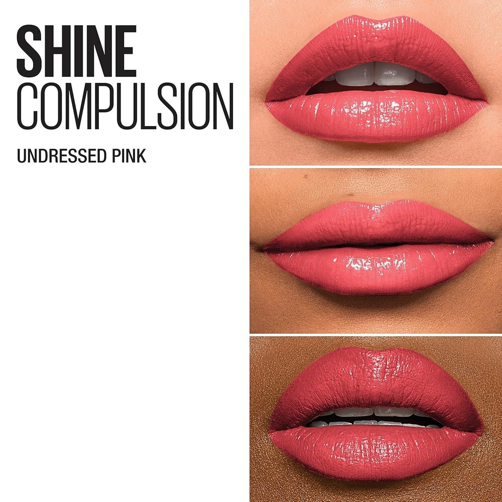 Meet the newest generation in lip color, Maybelline's first oil-in-stick lipstick has 60 percent reflective oils for an irresistible shine Build layer upon layer of pigmented color and irresistible shine with Maybelline's Shine Compulsion Lipstick Formulated with ultra-saturated pigments and a high shine effect, this glossy lipstick delivers a lustrous and indulgent finish Get saturated pigments, decadent shine, and an intensely glistening effect all in one lipstick color From neutrals shades such as taupe and brown to bold hues like purple and pink, Maybelline's high-shine lip color is available in a range of day-to-night colors