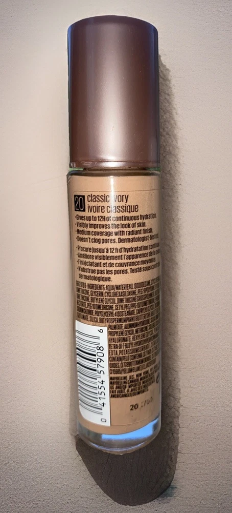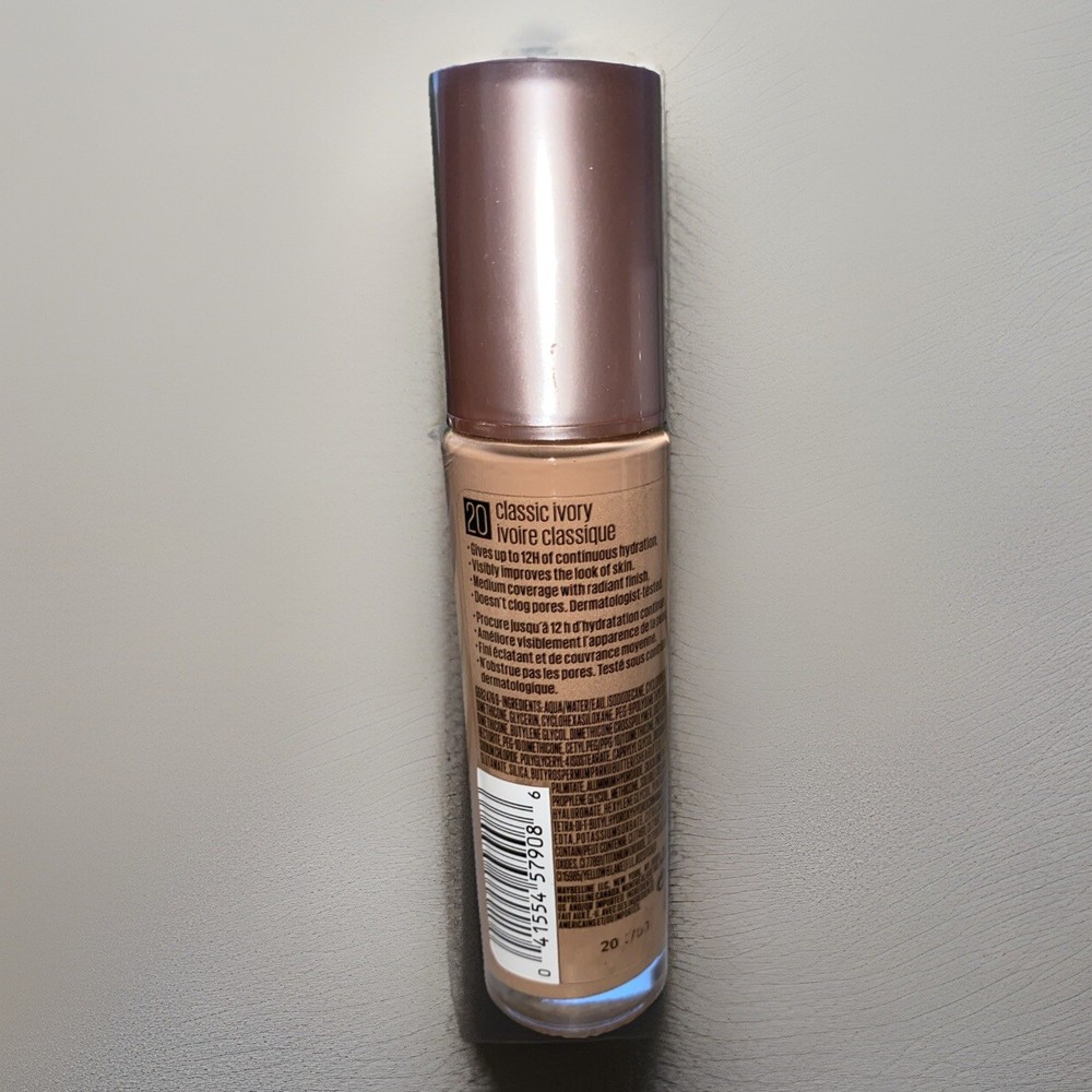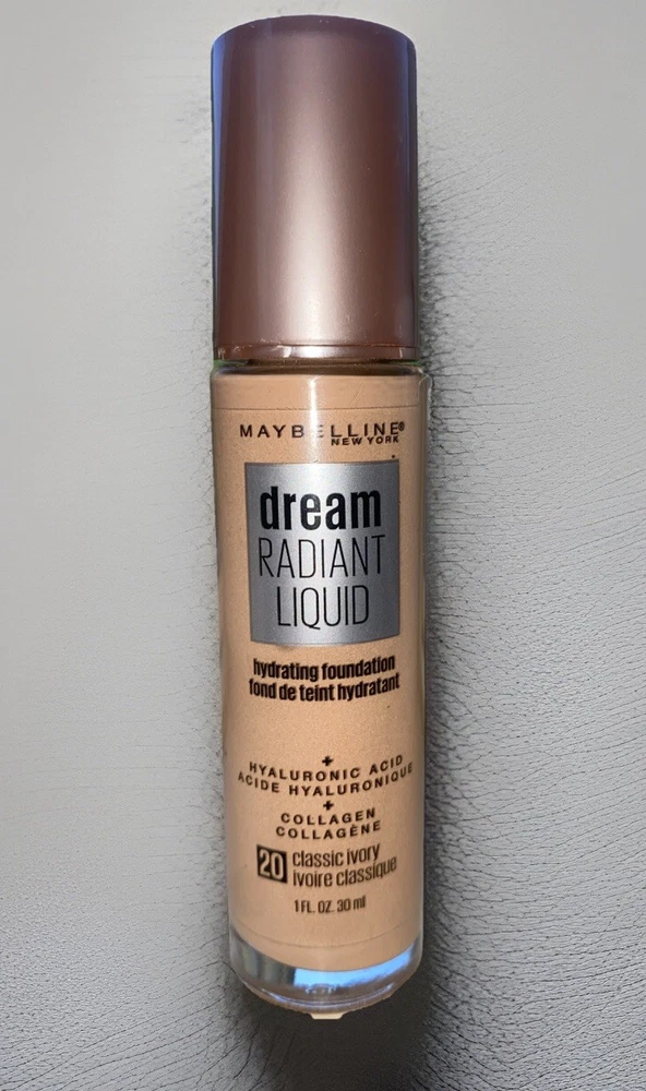 Get ready to face the city with radiance! Maybelline’s Dream® Radiant Liquid Foundation visibly improves the look of skin, giving you a natural-looking glow you’ll never want to take off. This lightweight foundation, formulated with hyaluronic acid and collagen, hydrates and smoothes skin while delivering a medium coverage foundation & a radiant finish for the look of plump skin. • Shade: 20 Classic Ivory (discontinued) • Swx once
